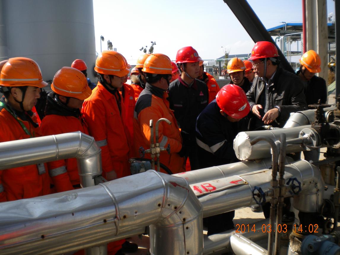 接着又去现场实地到生产装置区域、加热炉、球罐区查看了安全联锁装置,包括电动、气动控制的阀门、仪表设施、自动切断阀、液位计、传感器等,大家对现场安全设施情况有了初步的了解,再通过蒋总、俞主任联系在会议室的介绍进行现场讲解和说明,使得公司员工对安全联锁自动报警系统有了一个直观和理性的认识,增长了相关化工生产企业安全本质化知识。
