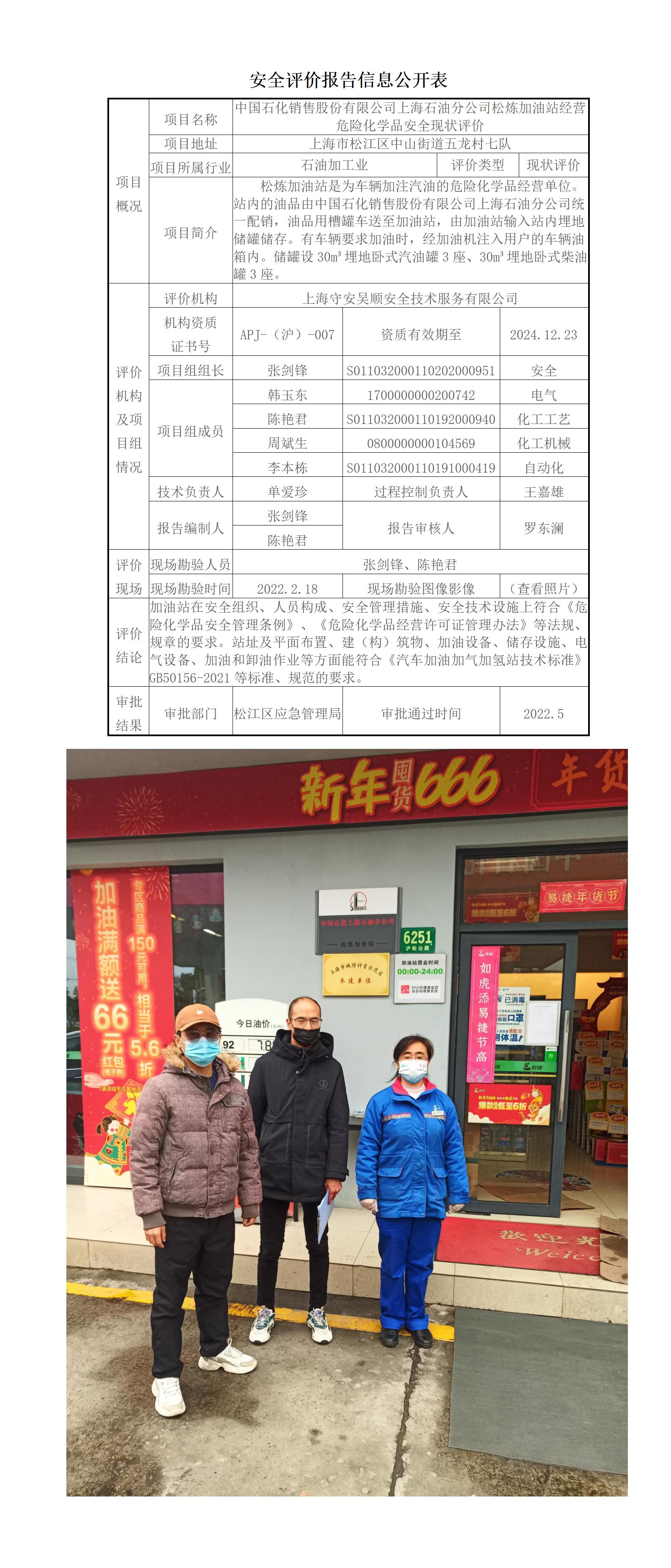 中国石化销售股份有限公司上海石油分公司松炼加油站经营危险化学品安全现状评价
