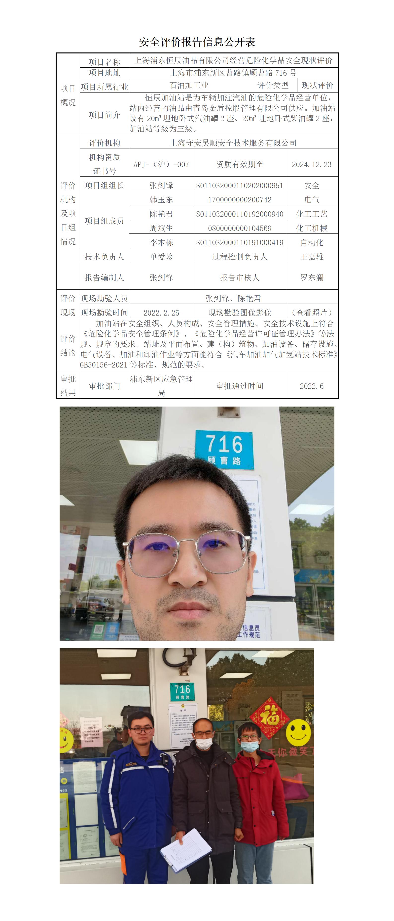 上海浦东恒辰油品有限公司经营危险化学品安全现状评价