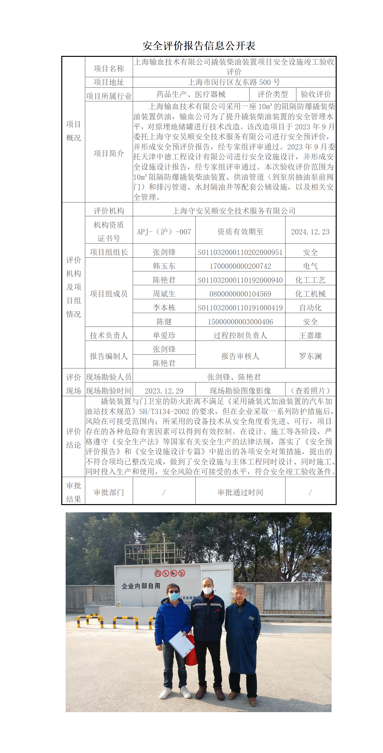 上海输血技术有限公司撬装柴油装置项目安全设施竣工验收评价