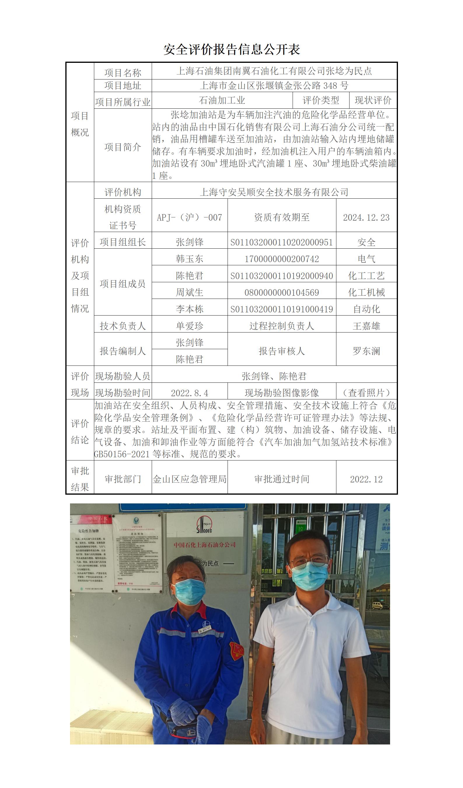 上海石油集团南翼石油化工有限公司张埝为民点经营危险化学品安全现状评价