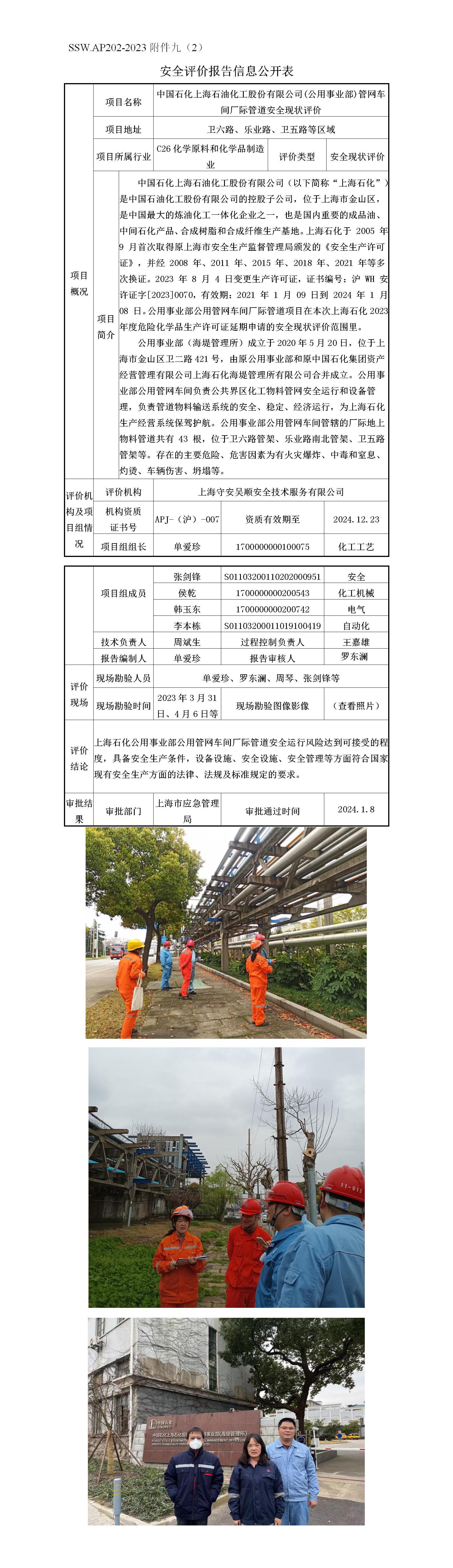 中国石化上海石油化工股份有限公司(公用事业部)管网车间厂际管道安全现状评价