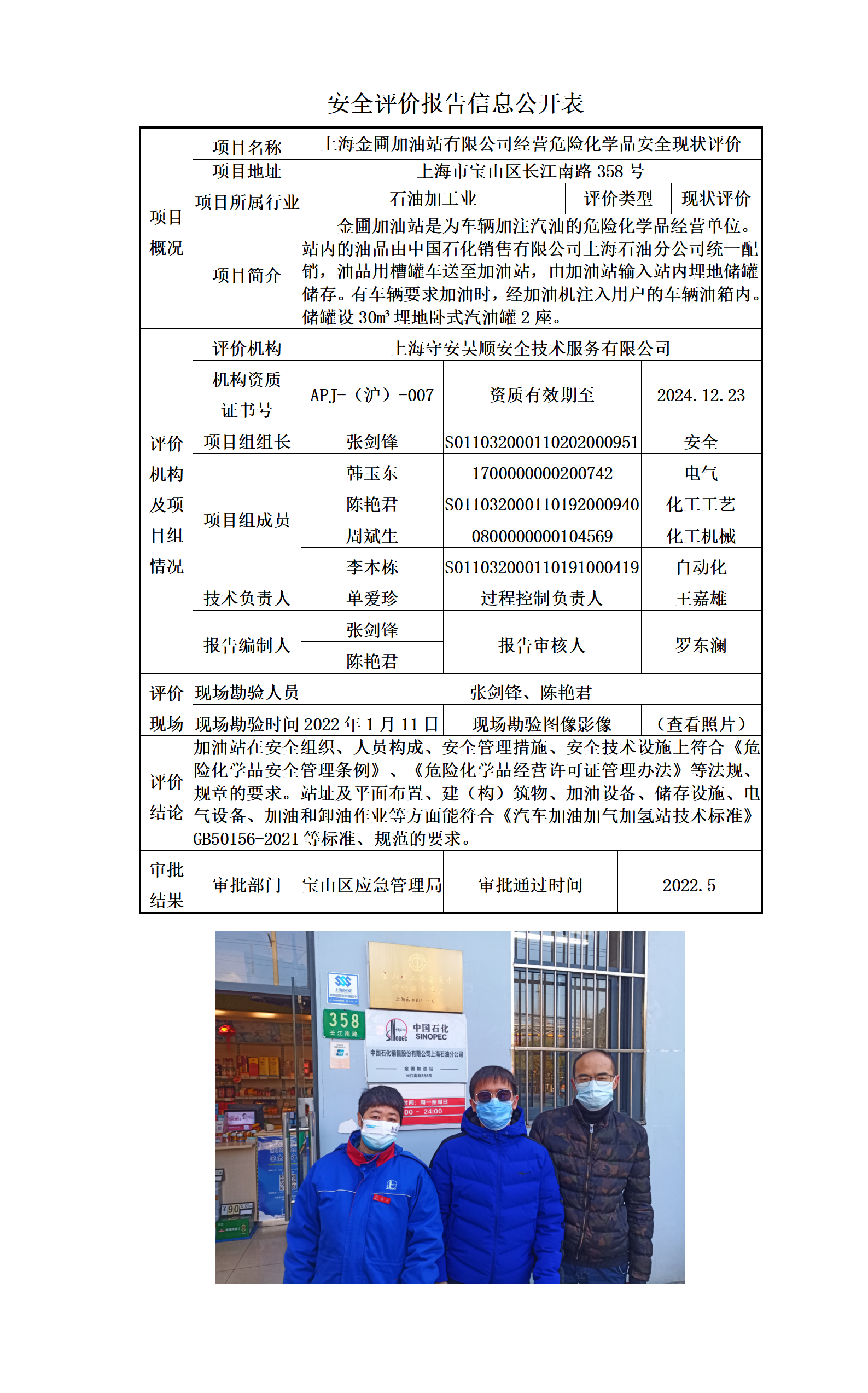 上海金圃加油站有限公司经营危险化学品安全现状评价