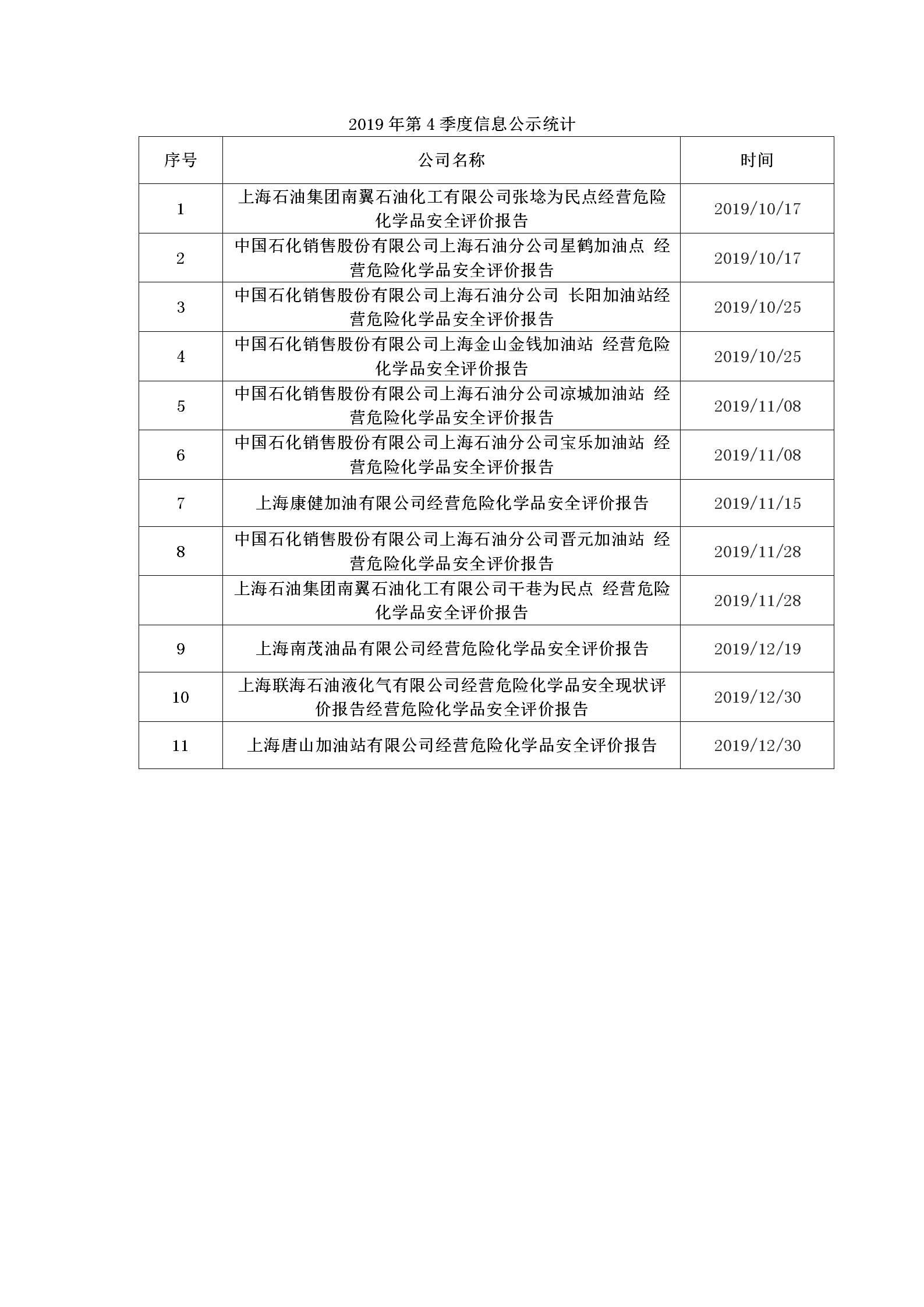 2019年第4季度信息公示统计