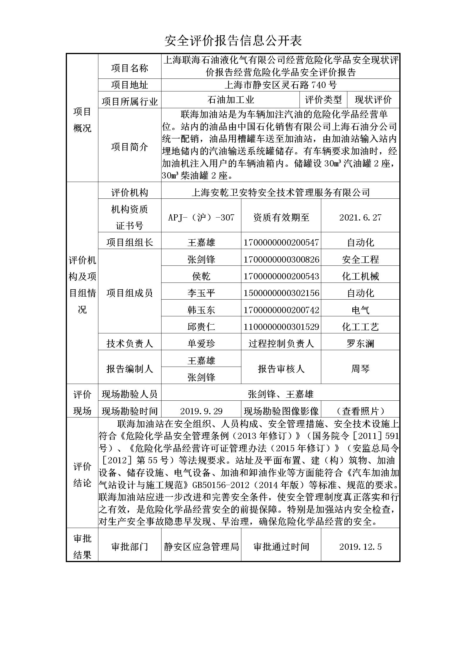 上海联海石油液化气有限公司经营危险化学品安全现状评价报告经营危险化学品安全评价报告