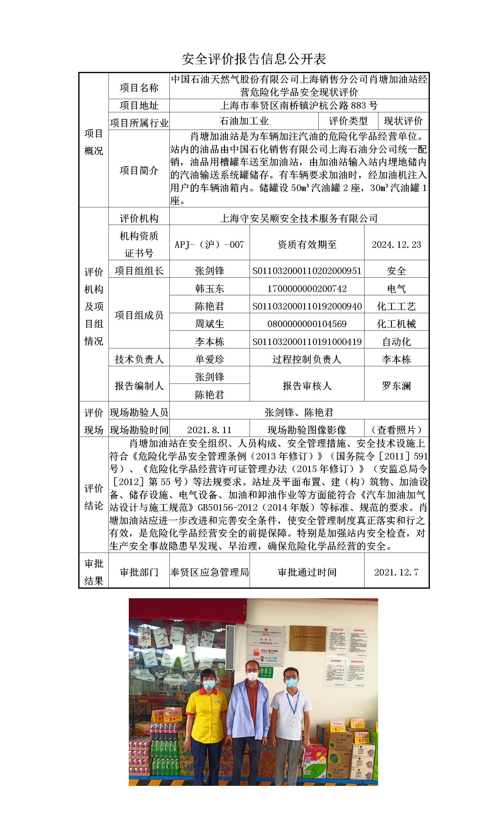 中国石油天然气股份有限公司上海销售分公司肖塘加油站经营危险化学品安全现状评价