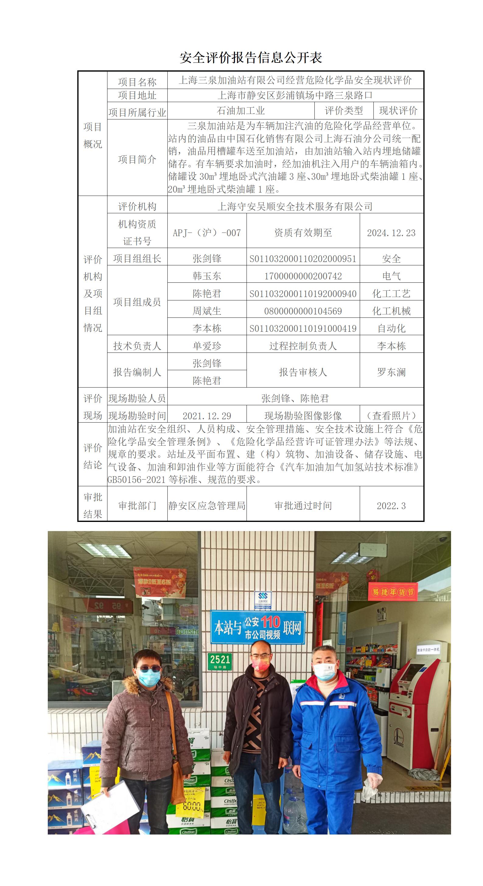 上海三泉加油站有限公司经营危险化学品安全现状评价