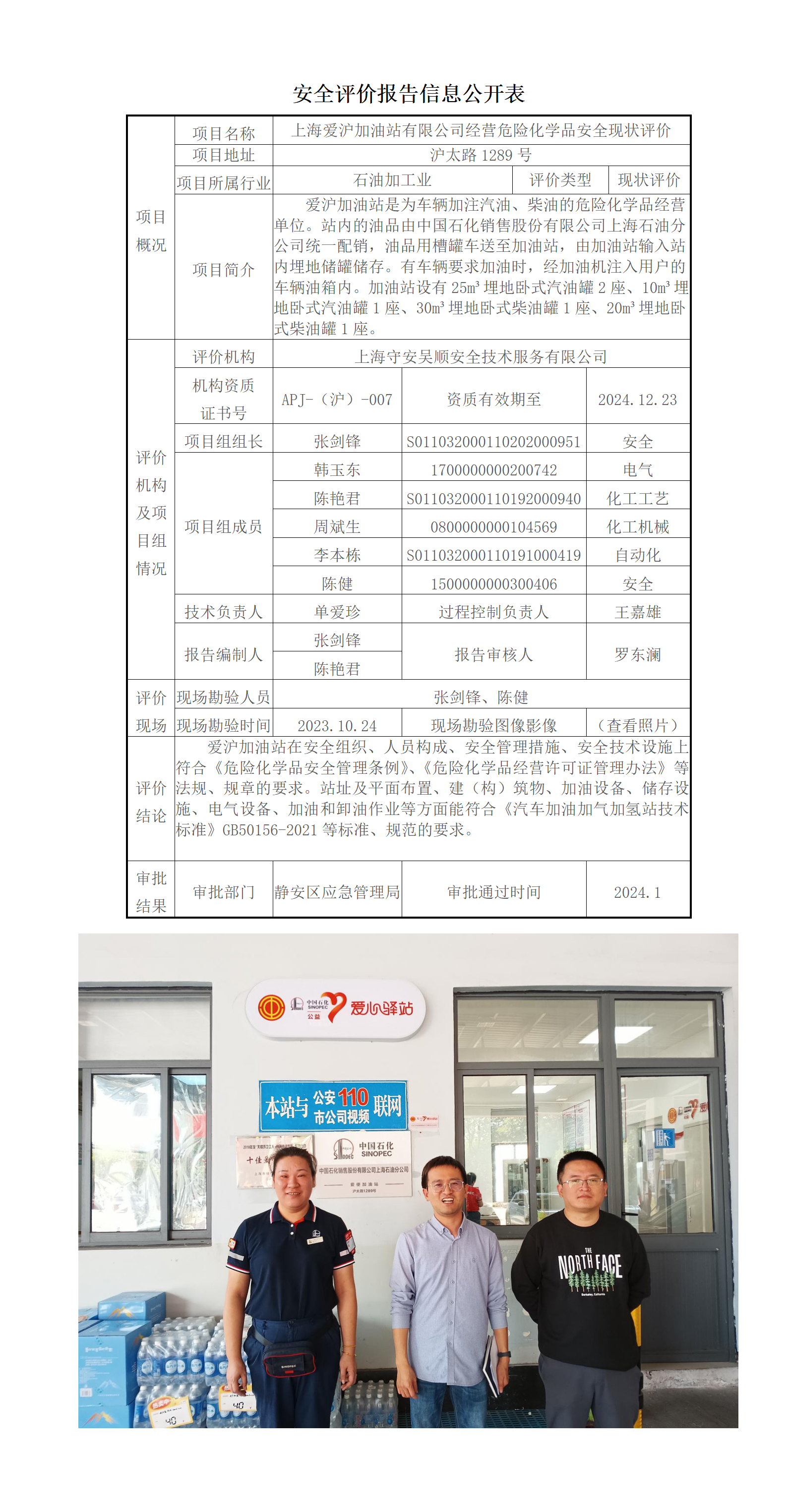 上海爱沪加油站有限公司经营危险化学品安全现状评价