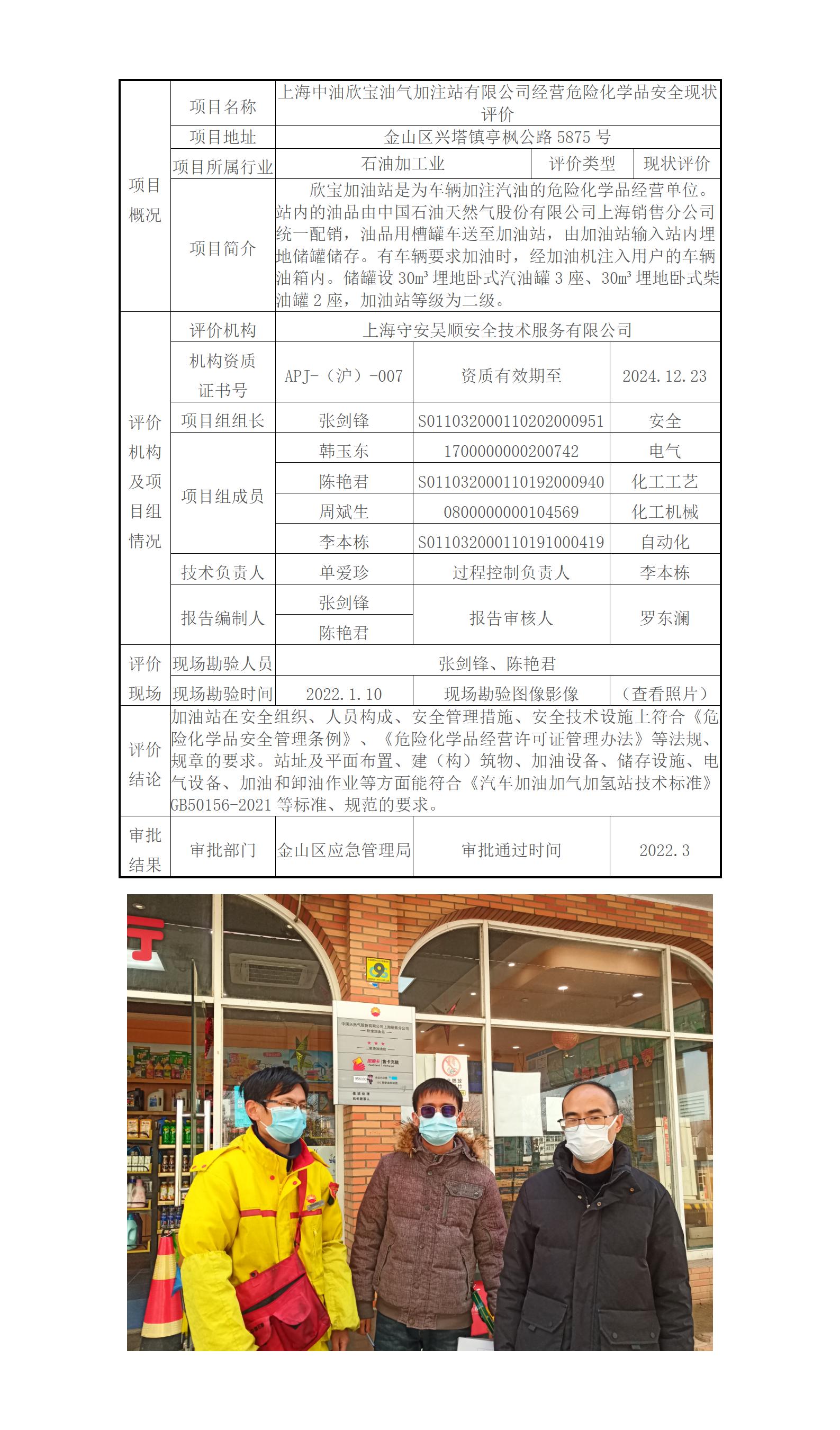 上海中油欣宝油气加注站有限公司 经营危险化学品安全现状评价