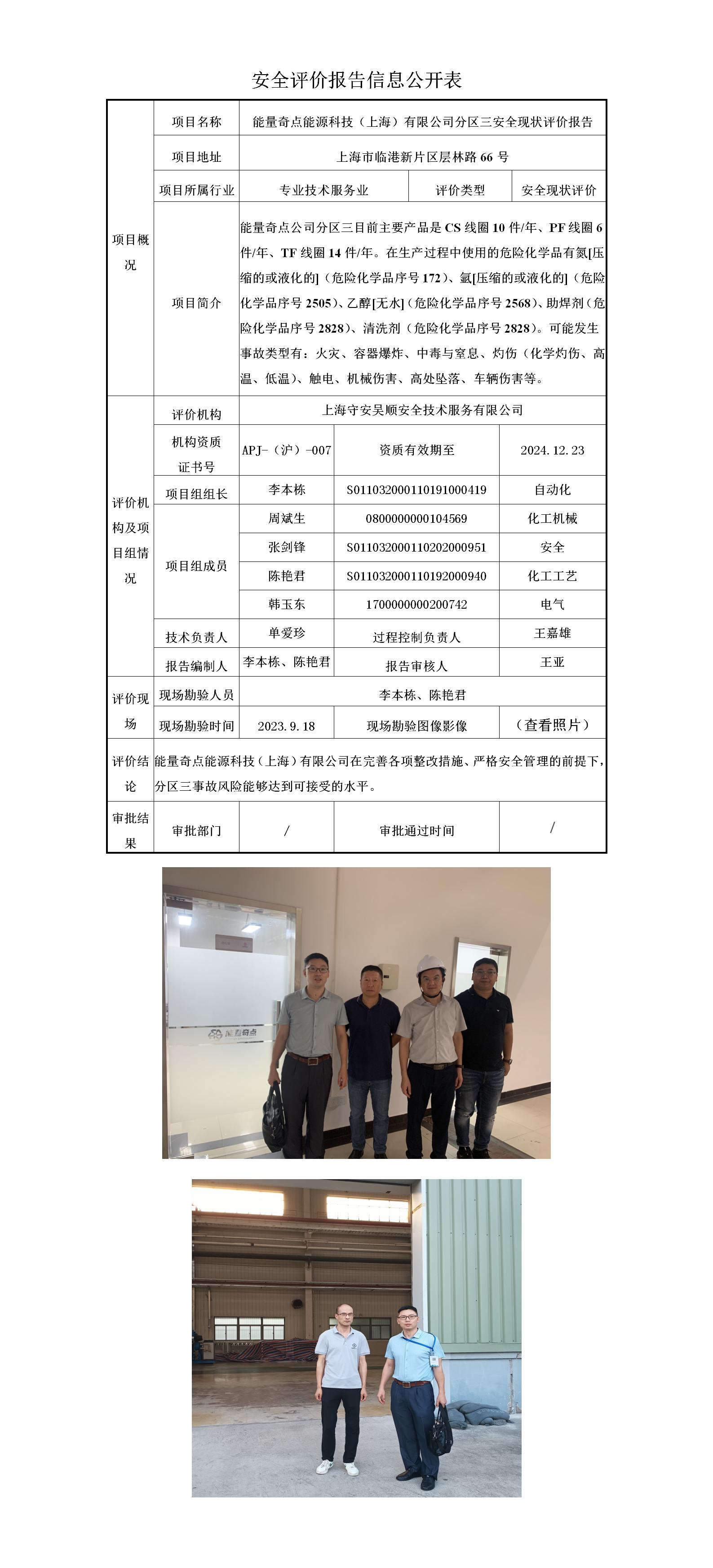能量奇点能源科技(上海)有限公司分区三安全现状评价