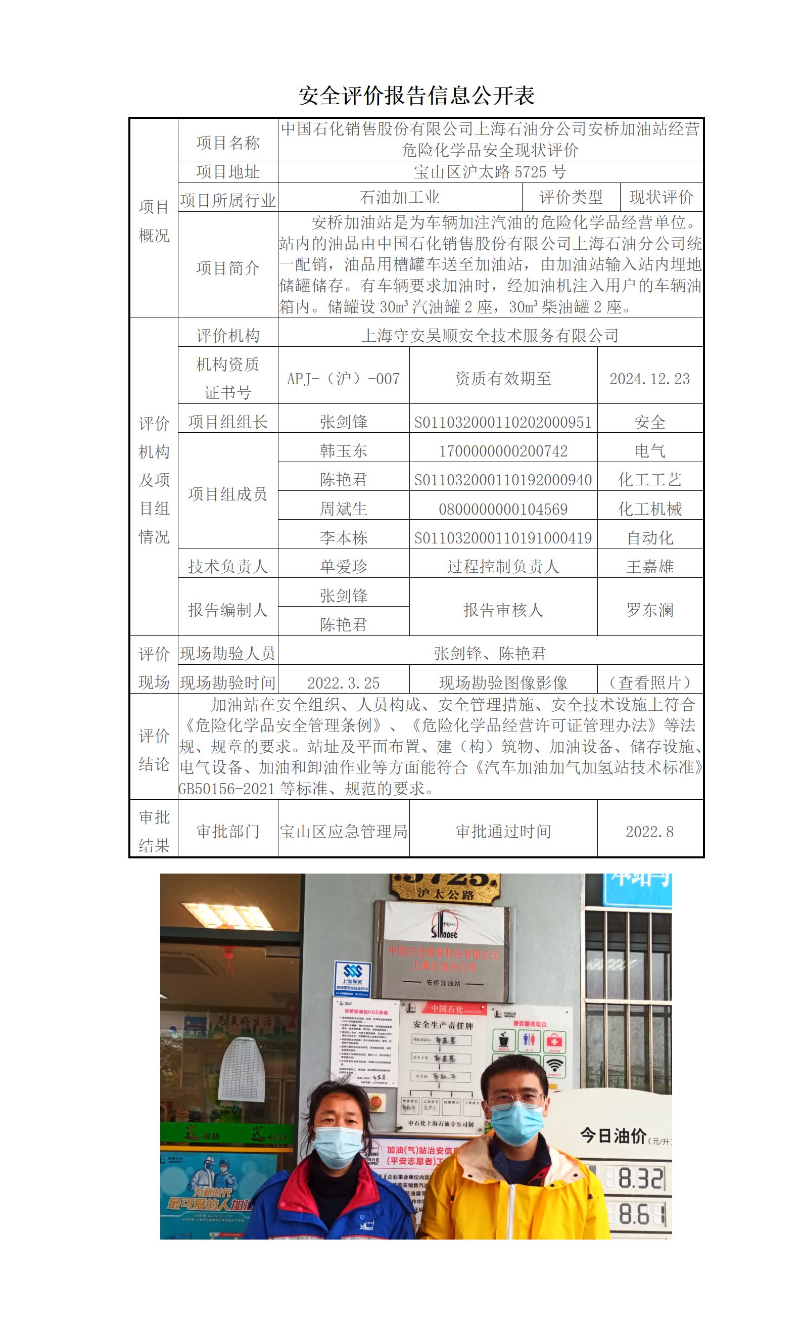 中国石化销售股份有限公司上海石油分公司安桥加油站经营危险化学品安全现状评价