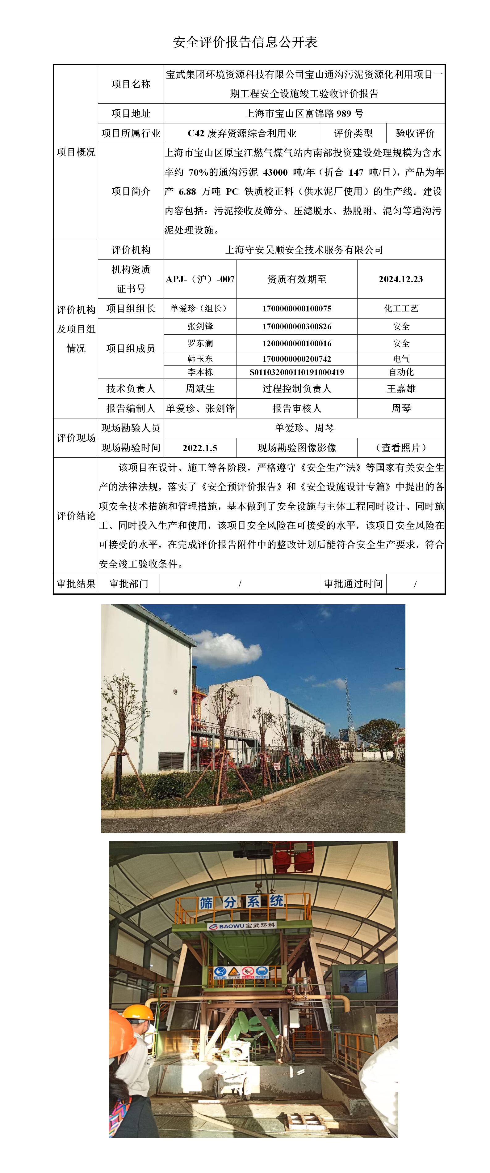 宝武集团环境资源科技有限公司高含水污泥资源化利用项目安全设施竣工验收评价