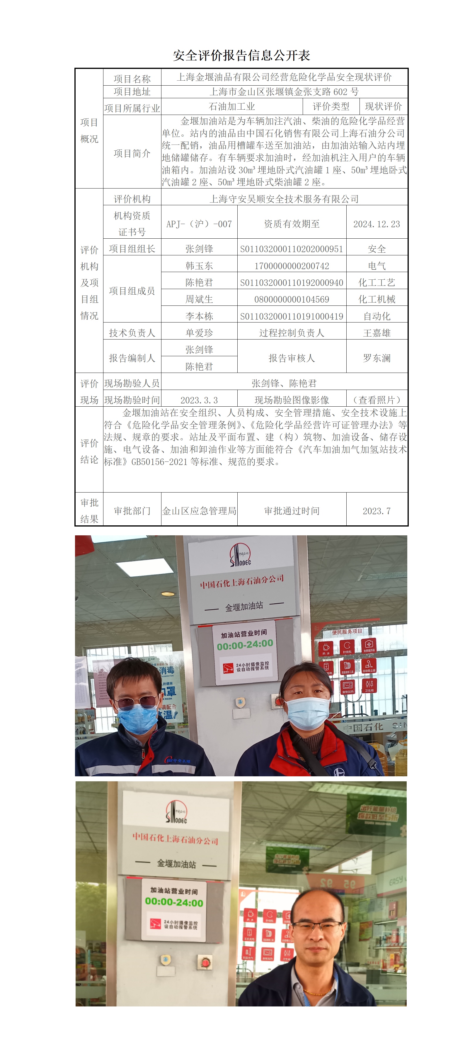 上海金堰油品有限公司经营危险化学品安全现状评价