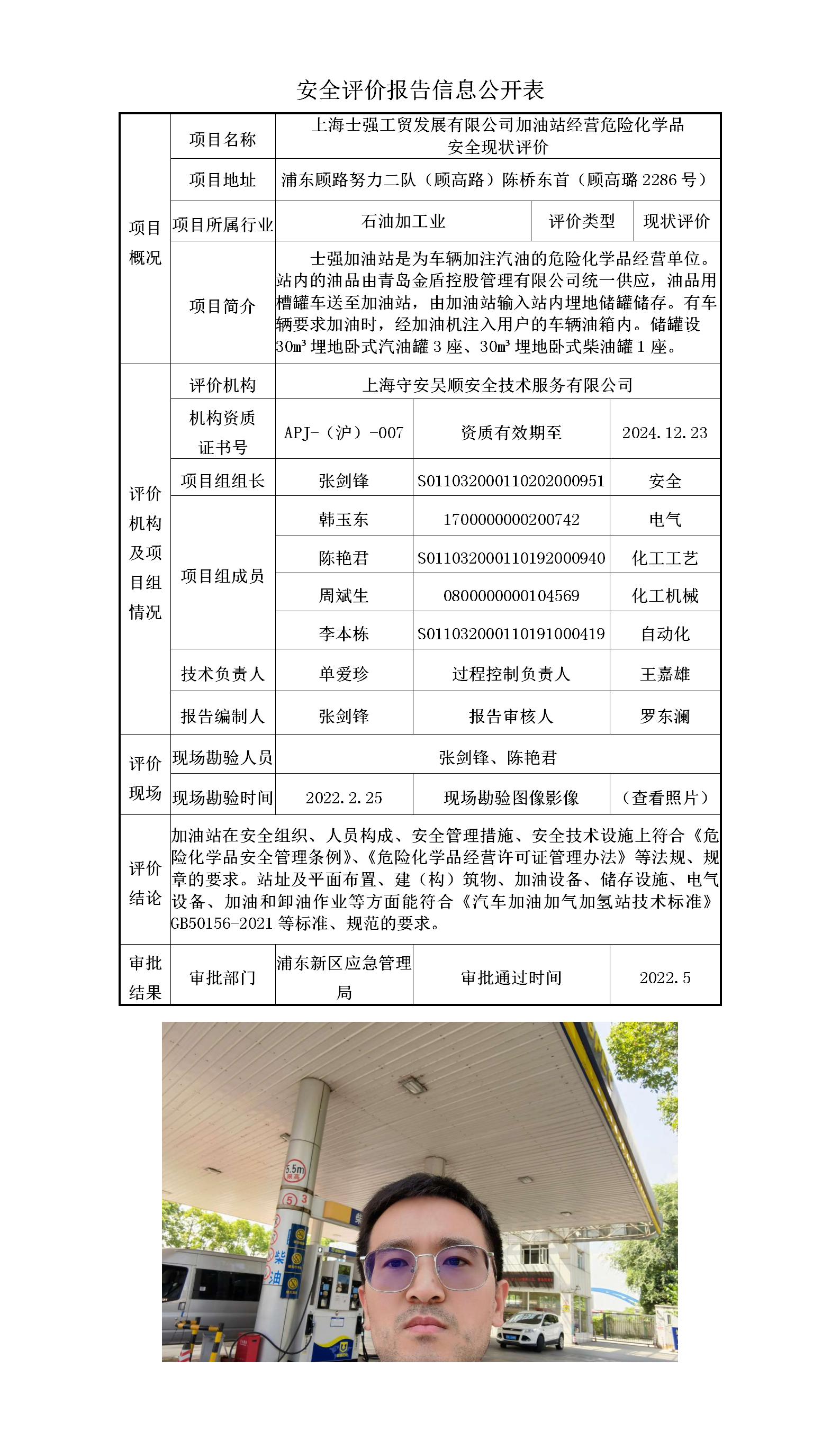 上海士强工贸发展有限公司加油站经营危险化学品安全现状评价