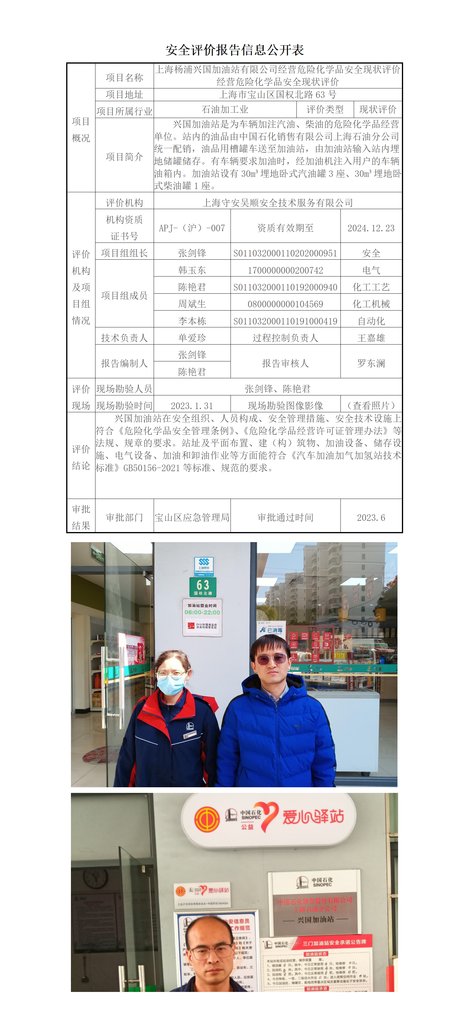 上海杨浦兴国加油站有限公司经营危险化学品安全现状评价
