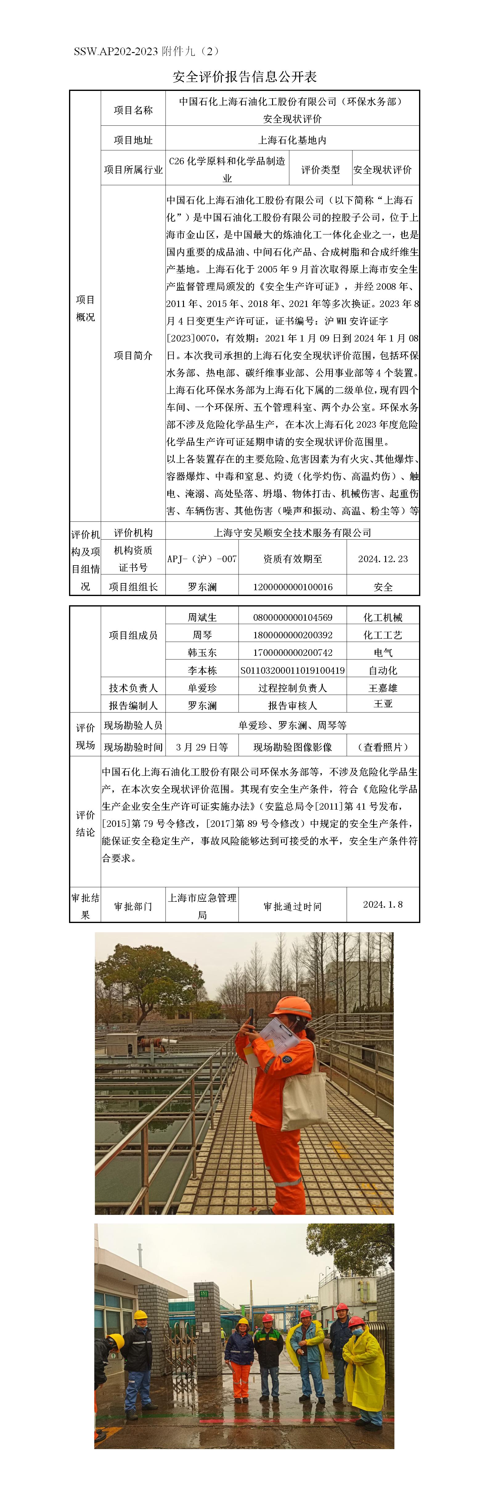 中国石化上海石油化工股份有限公司(环保水务部)安全现状评价