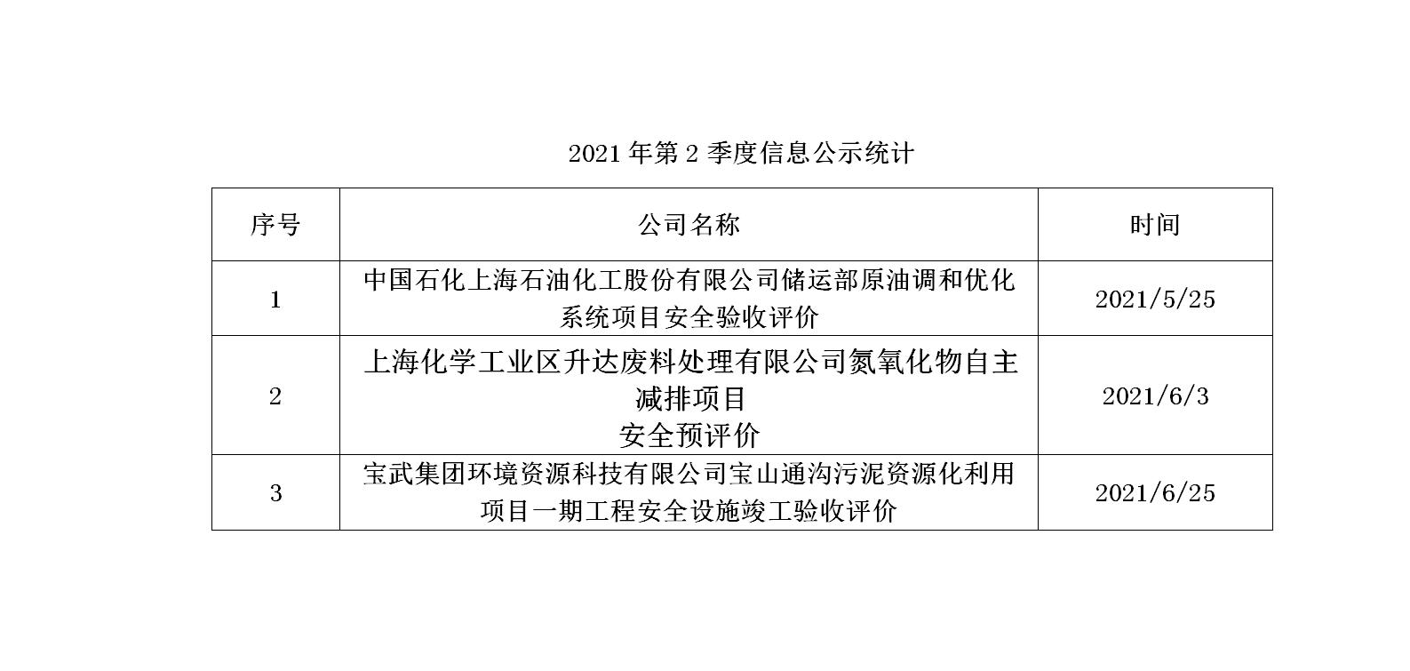 2021年第2季度信息公示统计