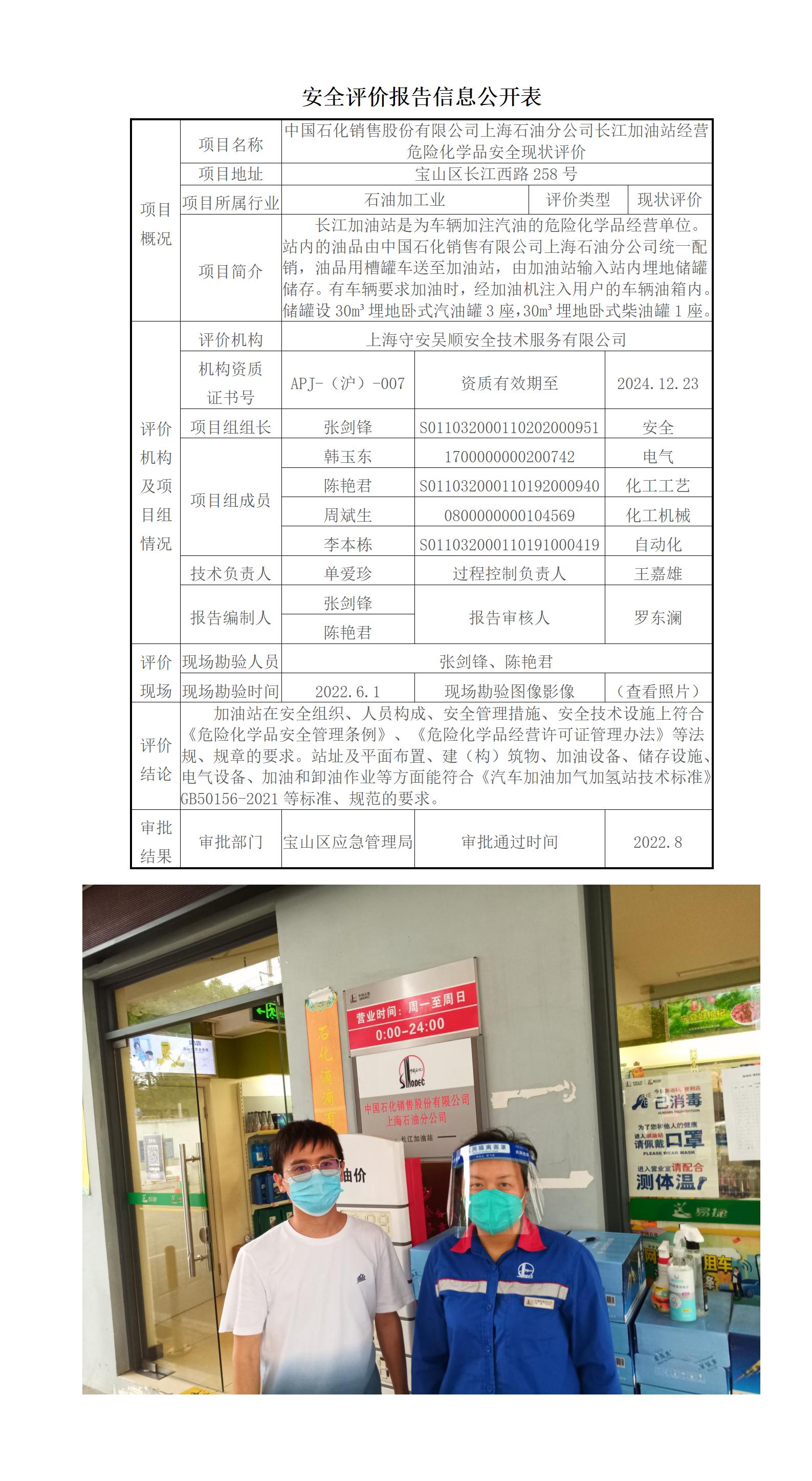 中国石化销售股份有限公司上海石油分公司长江加油站经营危险化学品安全现状评价