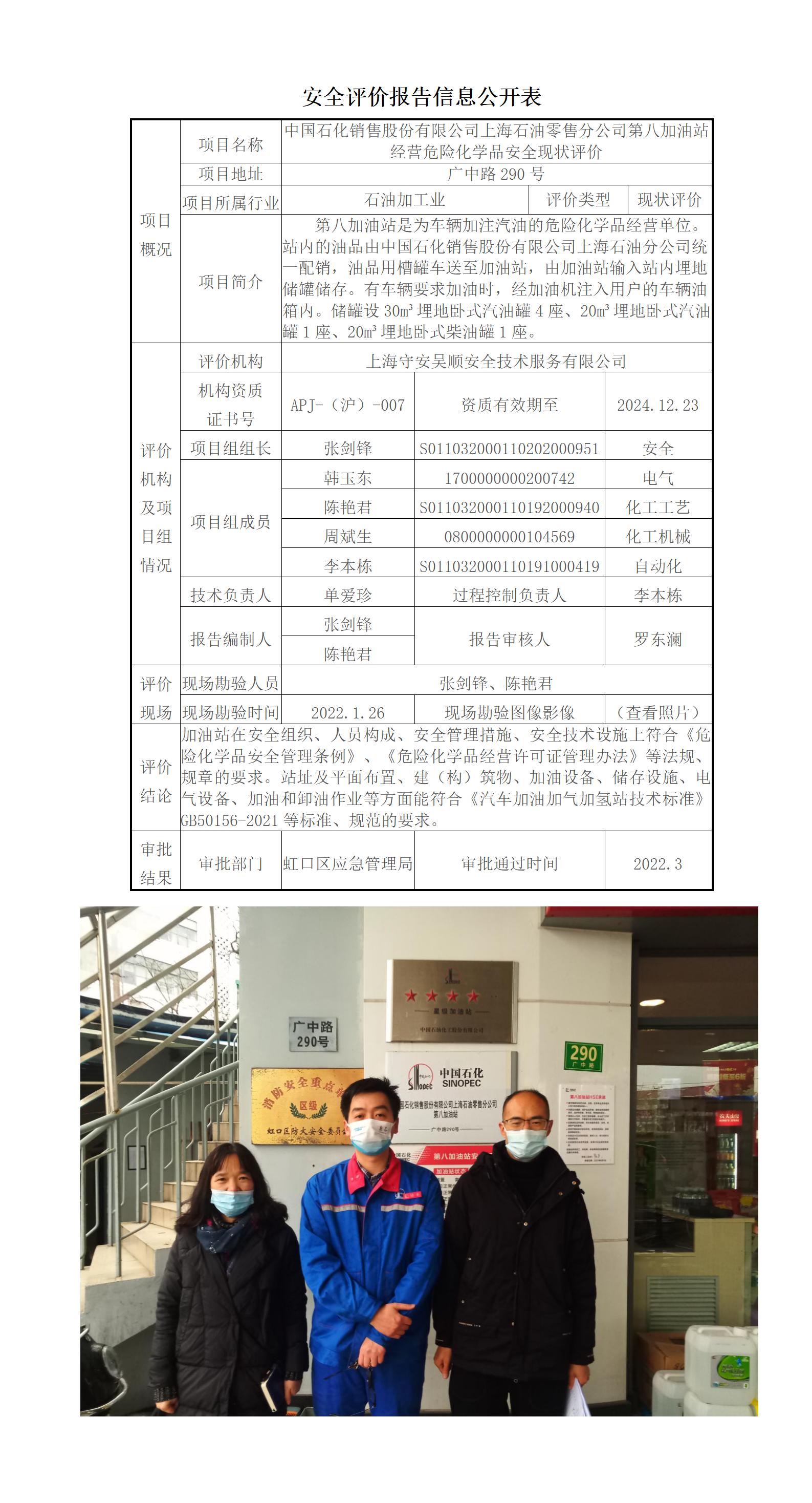 中国石化销售股份有限公司上海石油零售分公司第八加油站经营危险化学品安全现状评价