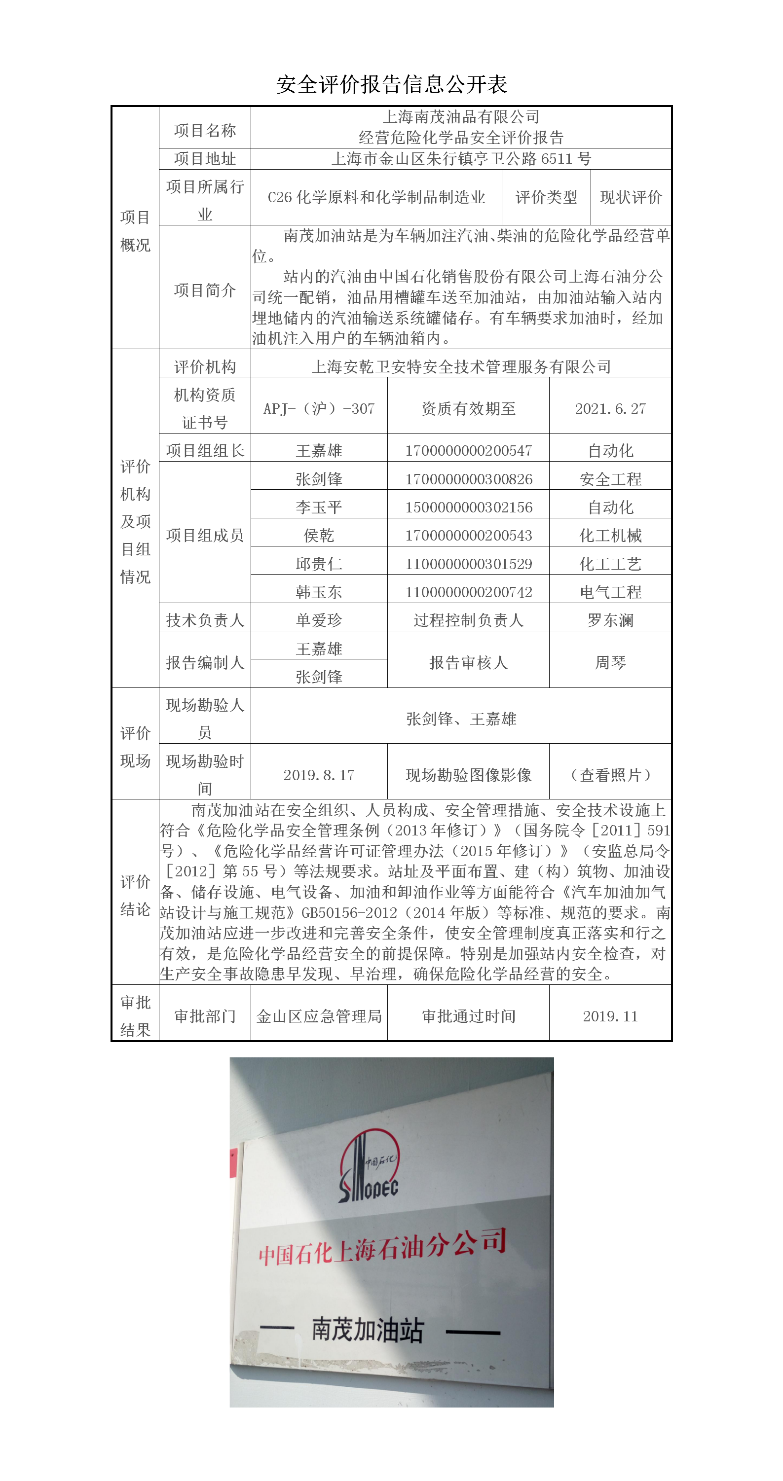 上海南茂油品有限公司经营危险化学品安全评价报告