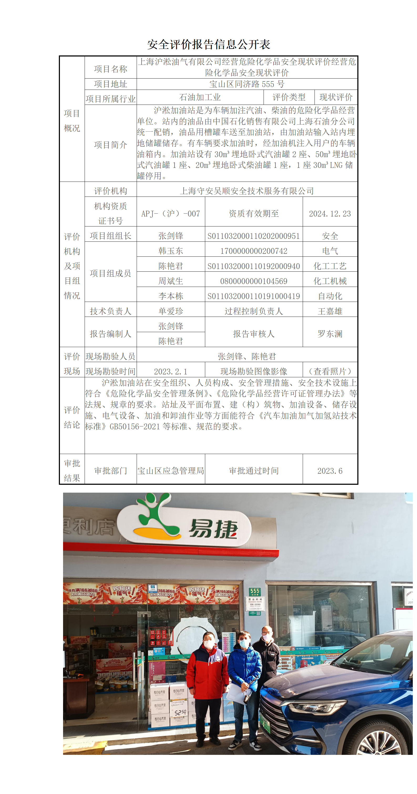 上海沪淞油气有限公司经营危险化学品安全现状评价