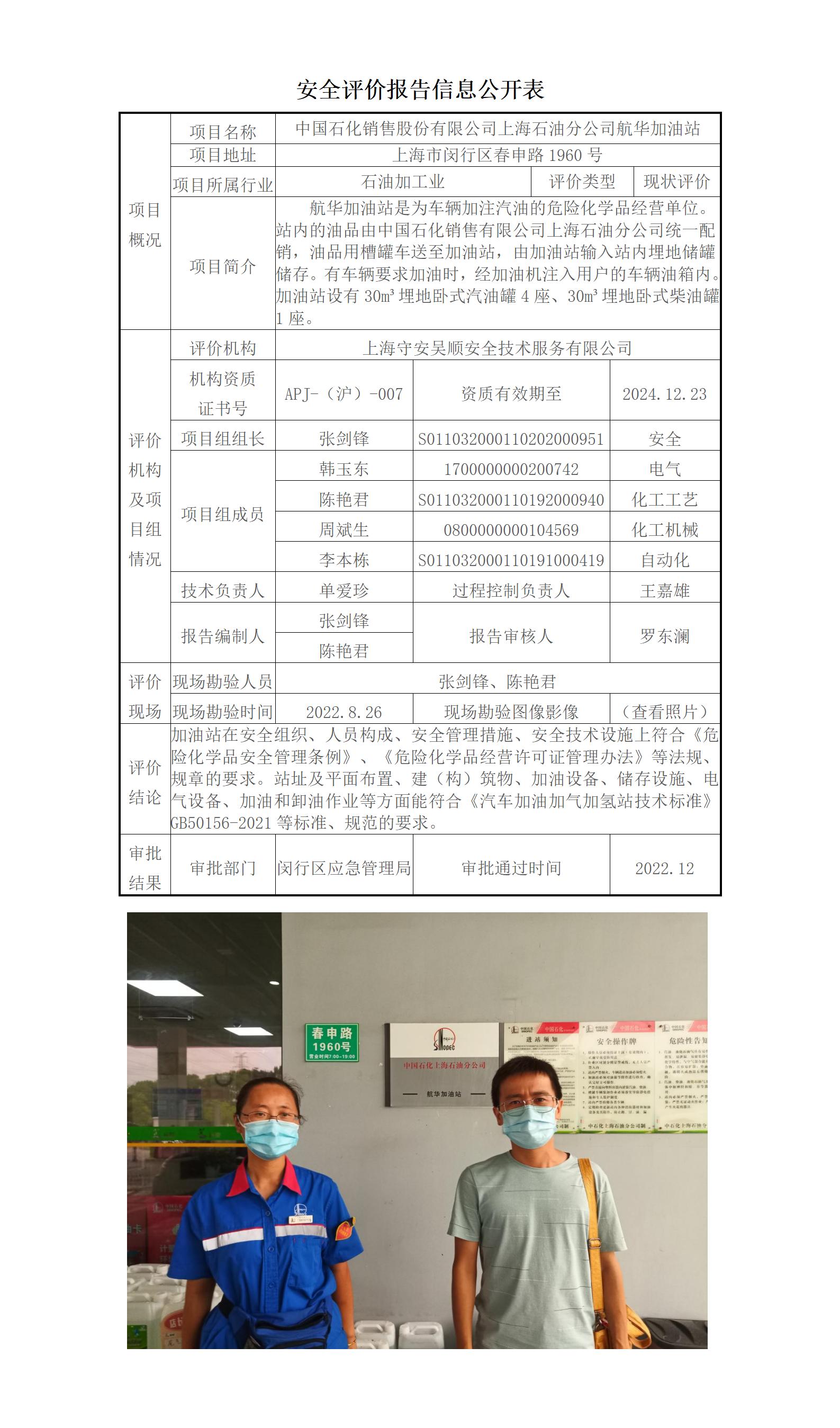 中国石化销售股份有限公司上海石油分公司航华加油站经营危险化学品安全现状评价