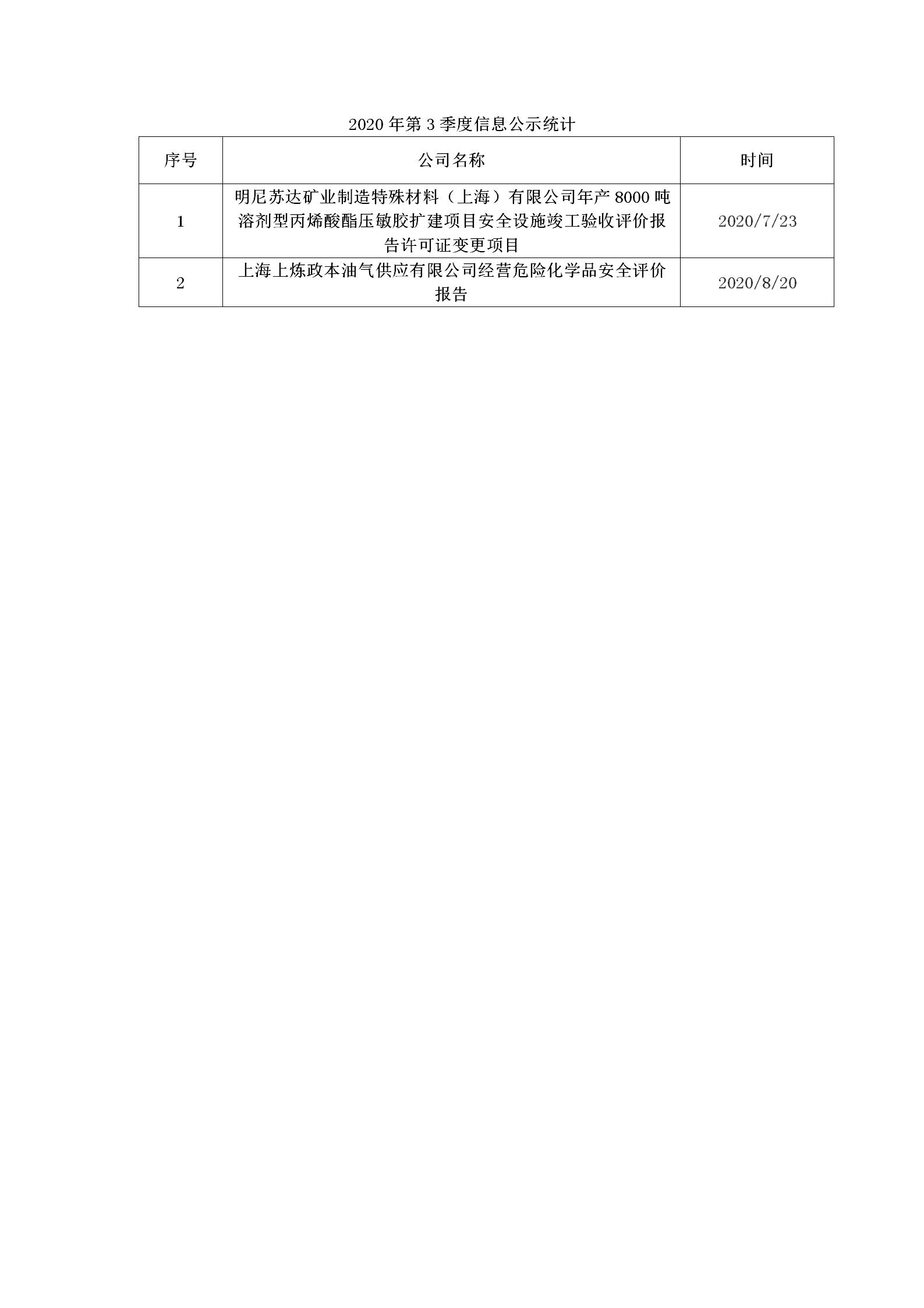 2020年第3季度信息公示统计