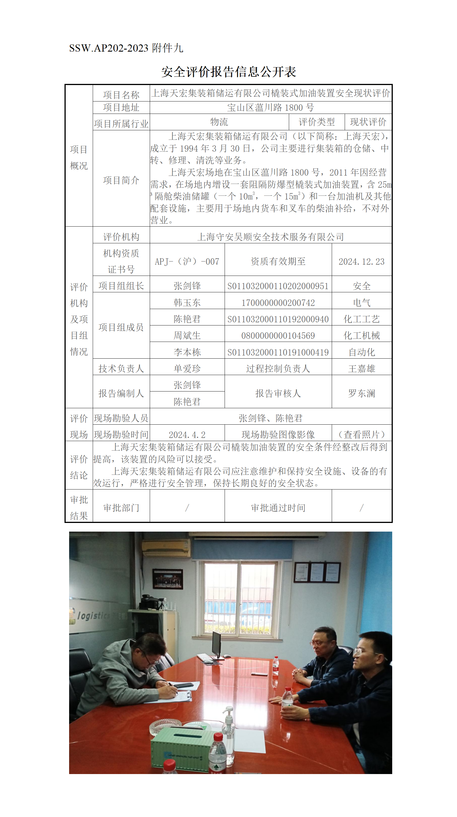 上海天宏集装箱储运有限公司橇装式加油装置安全现状评价