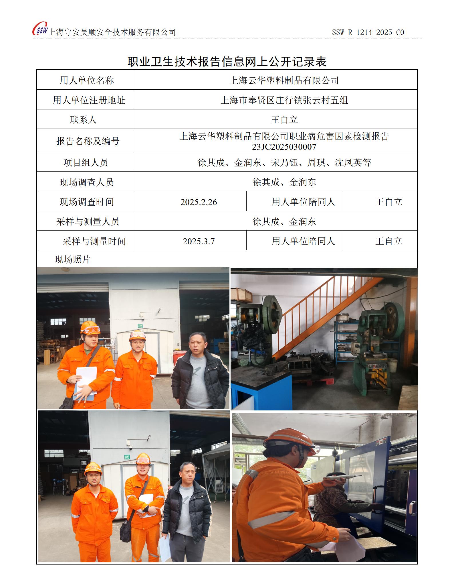 上海云华塑料制品有限公司职业病危害因素定期检测