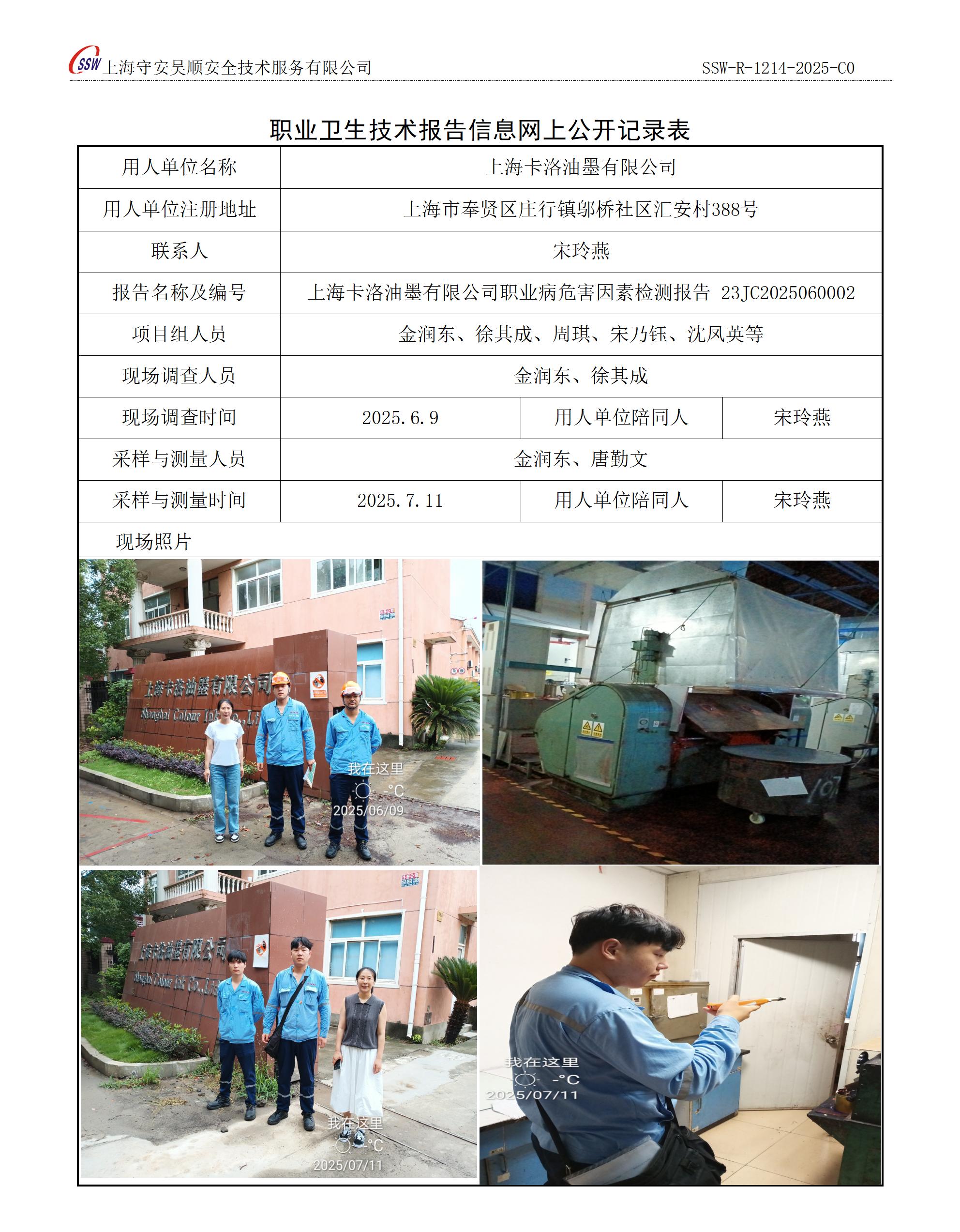 上海卡洛油墨有限公司职业病危害因素定期检测