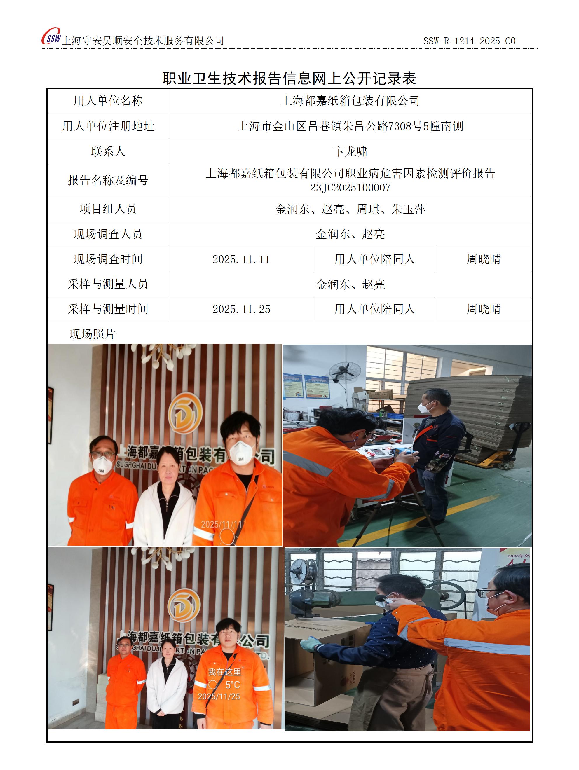 上海都嘉纸箱包装有限公司职业病危害因素定期检测