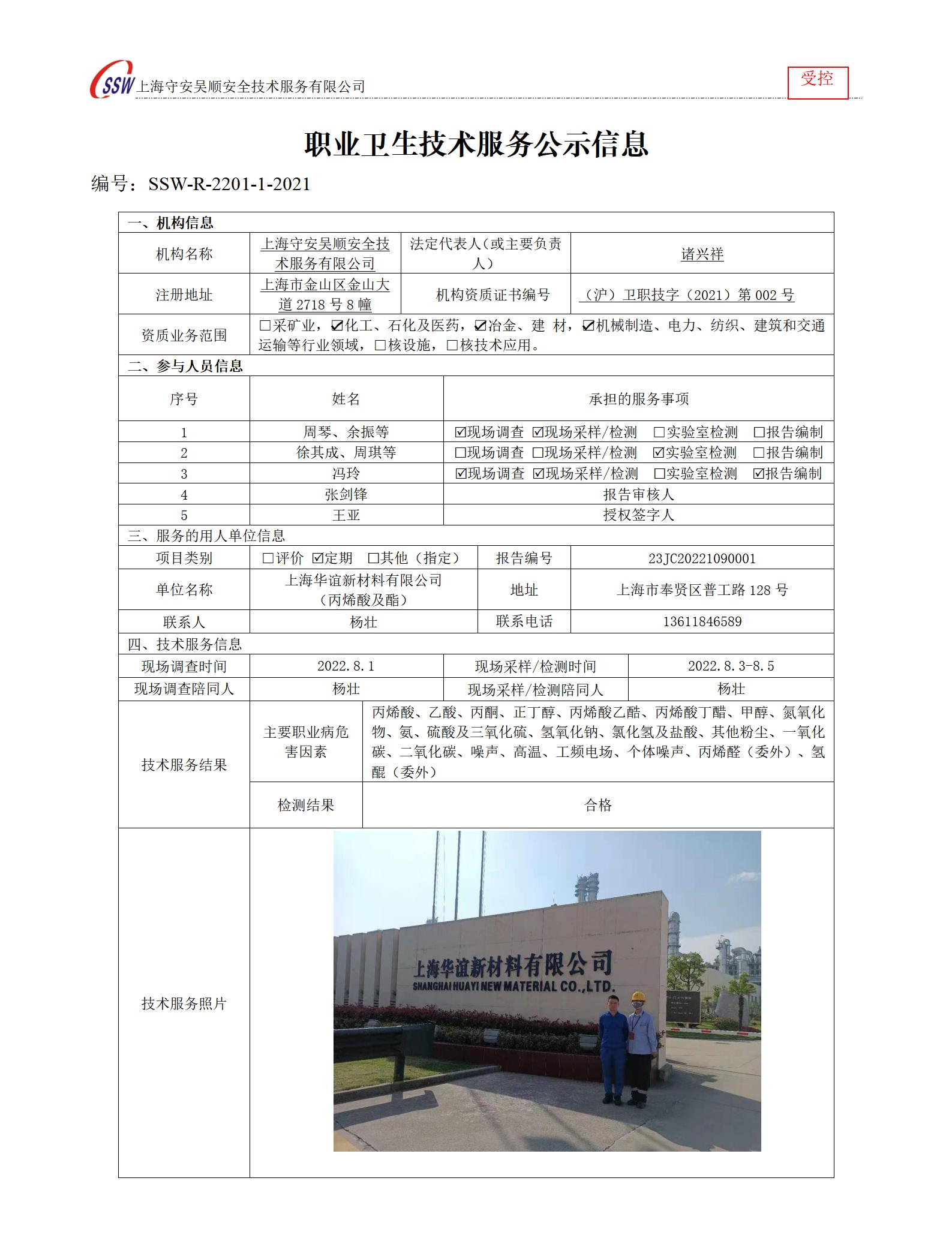 上海华谊新材料有限公司(丙烯酸及酯)检测
