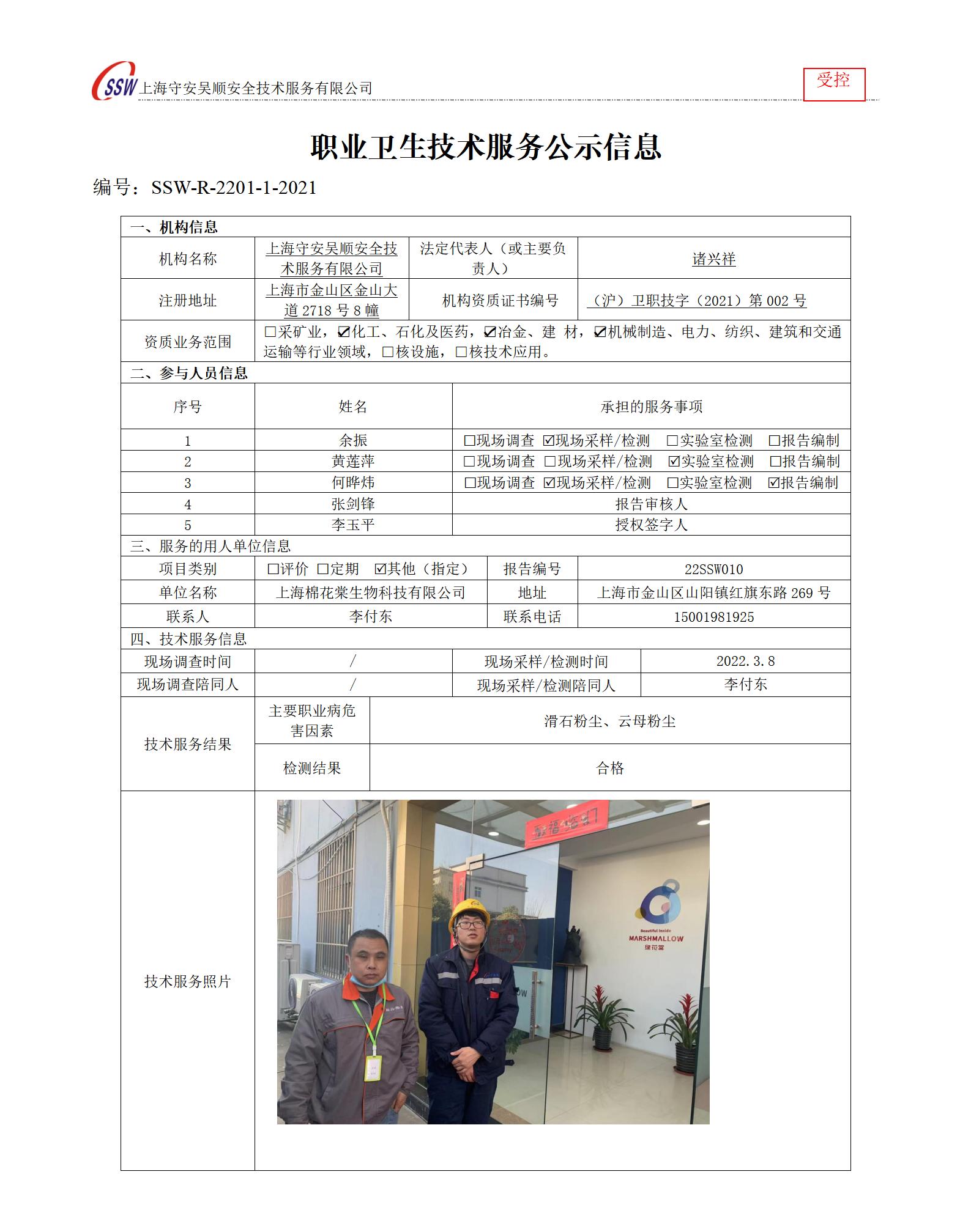 上海绵花棠生物科技有限公司检测