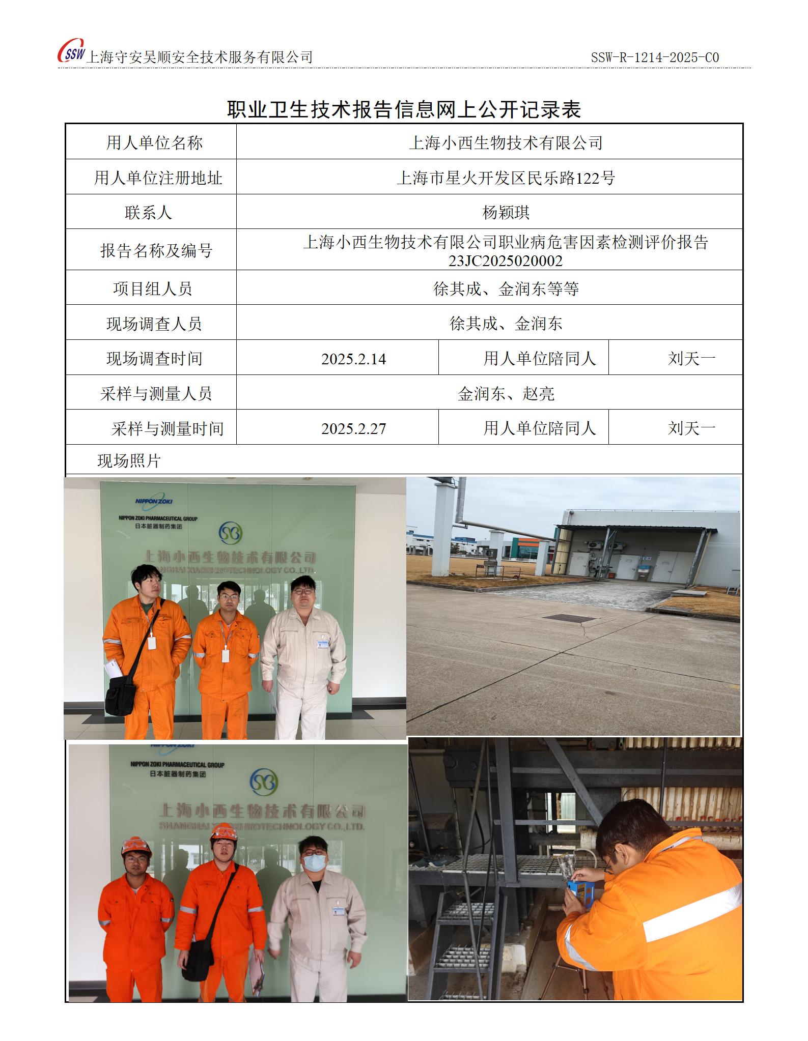 上海小西生物技术有限公司职业病危害因素定期检测