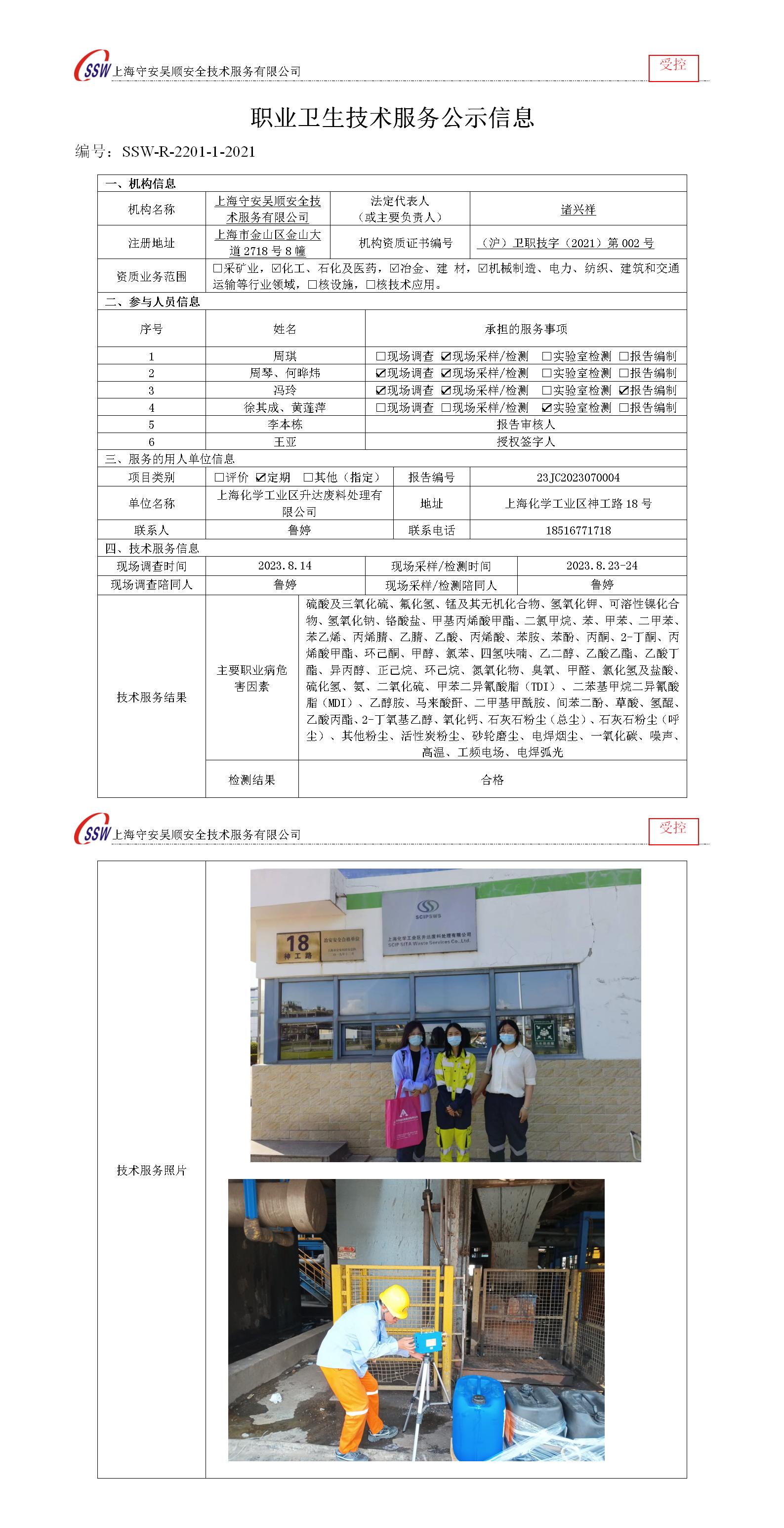 上海化学工业区升达废料处理有限公司检测