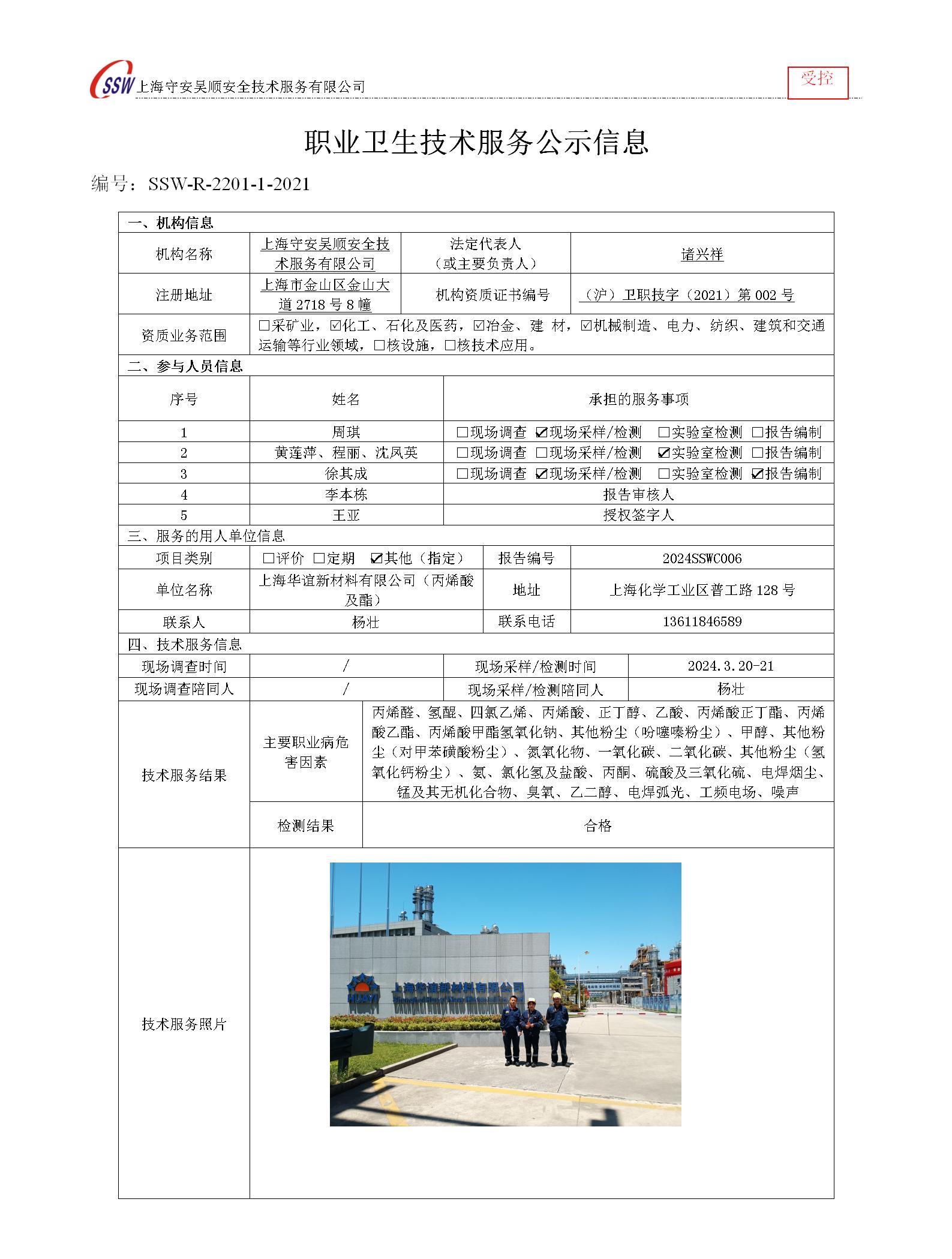 上海华谊新材料有限公司(丙烯酸及酯)检测