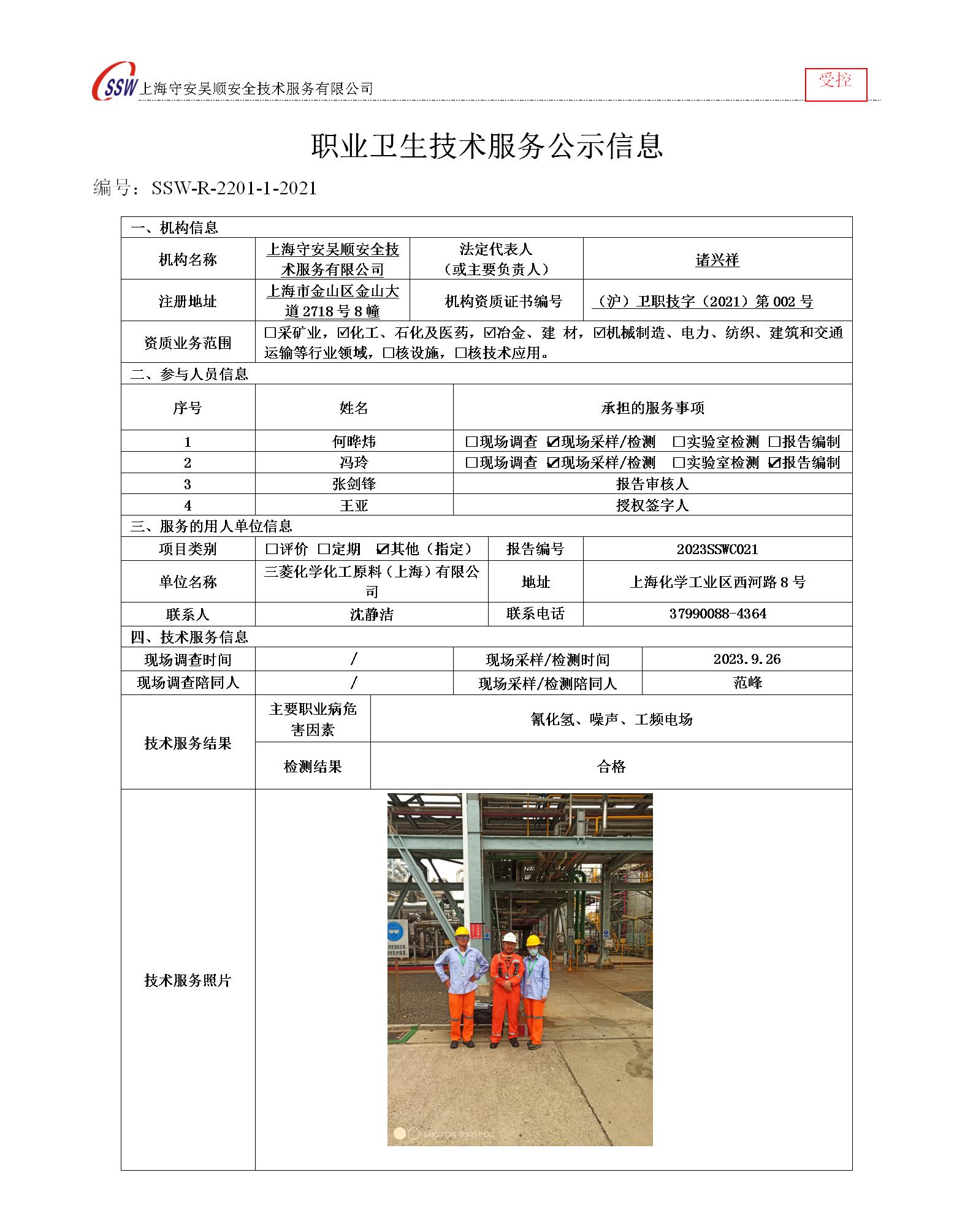 三菱化学化工原料(上海)有限公司检测
