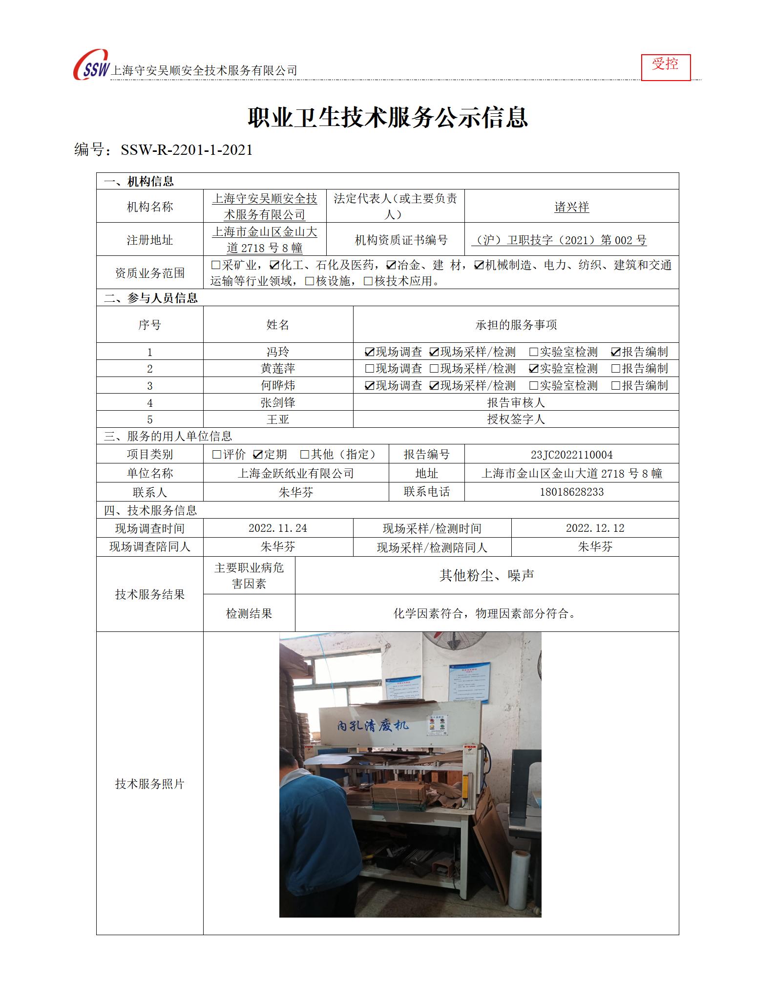 上海金跃纸业有限公司检测
