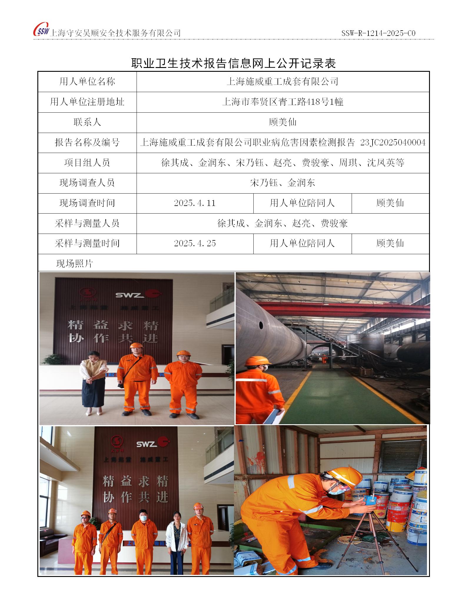 上海施威重工成套有限公司定期检测