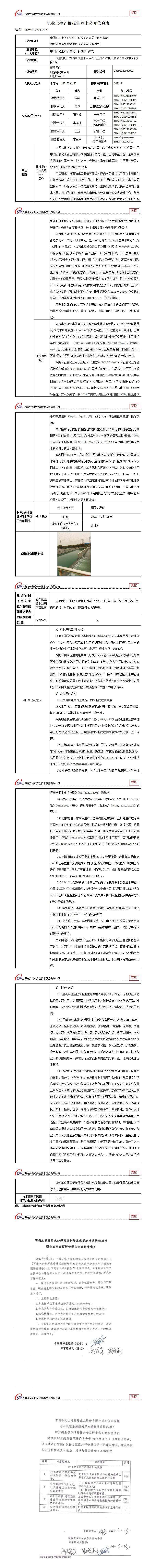 中国石化上海石油化工股份有限公司环保水务部 污水处理系统新增尾水提标及监控池项目预评价