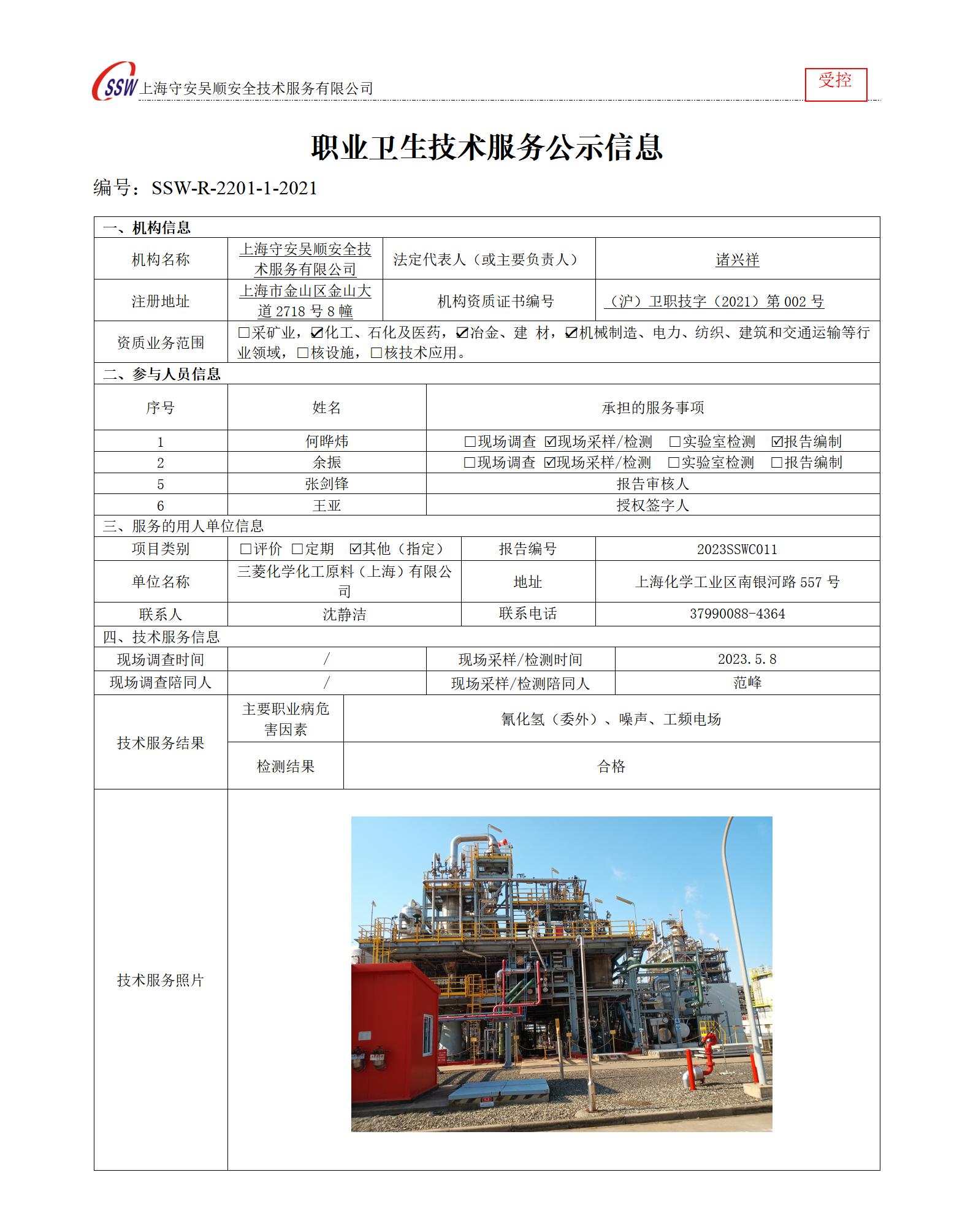 三菱化学化工原料(上海)有限公司检测