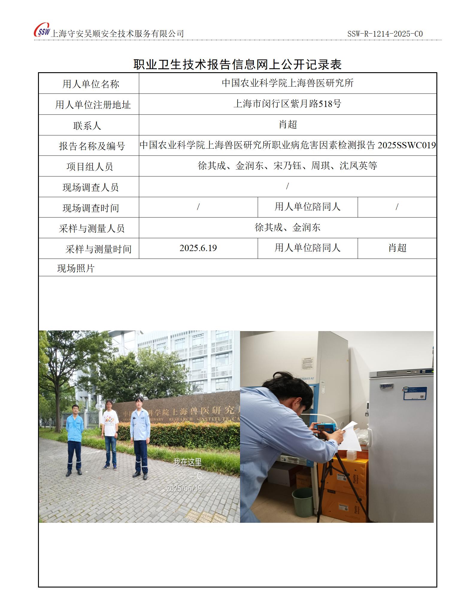 中国农业科学院上海兽医研究所职业病危害因素指定检测