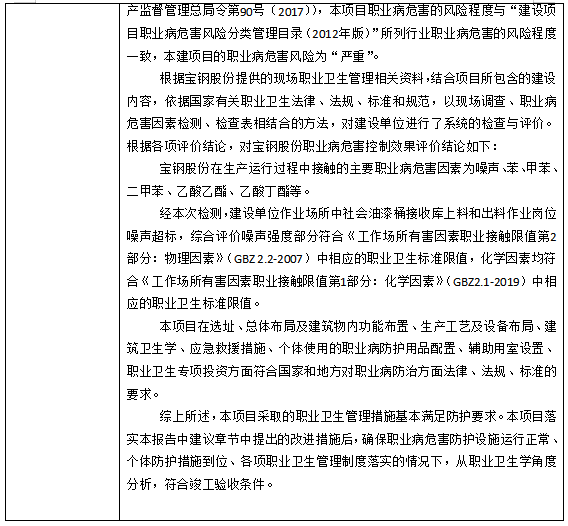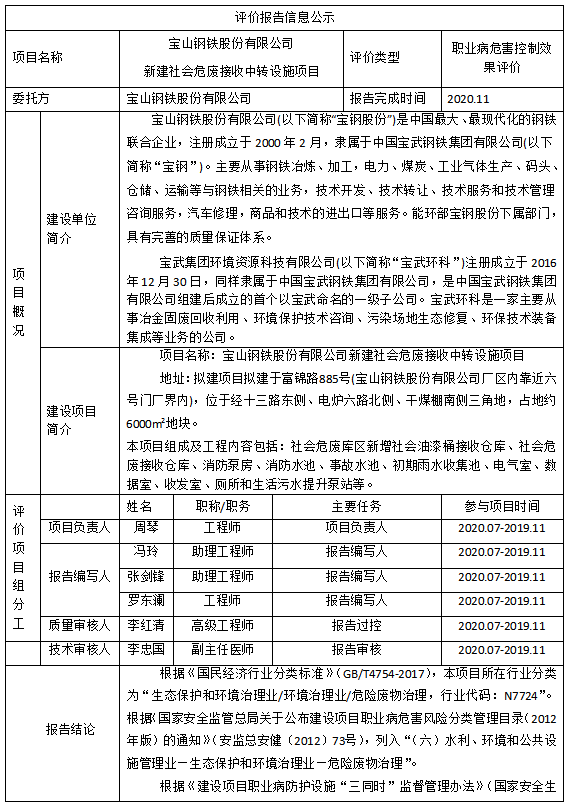 宝山钢铁股份有限公司新建社会危废接收中转设施项目职业病危害控制效果评价