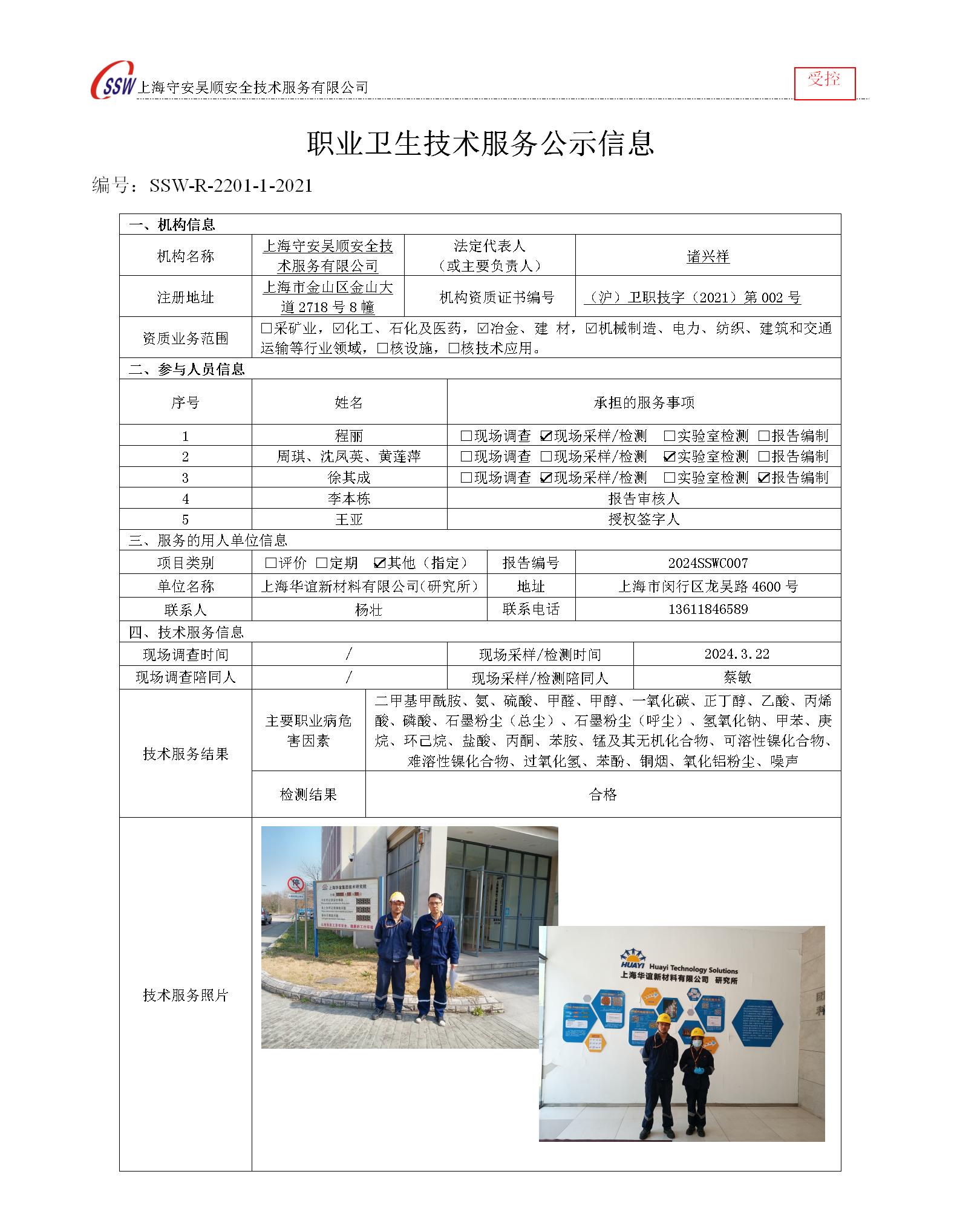 上海华谊新材料有限公司(研究所)检测