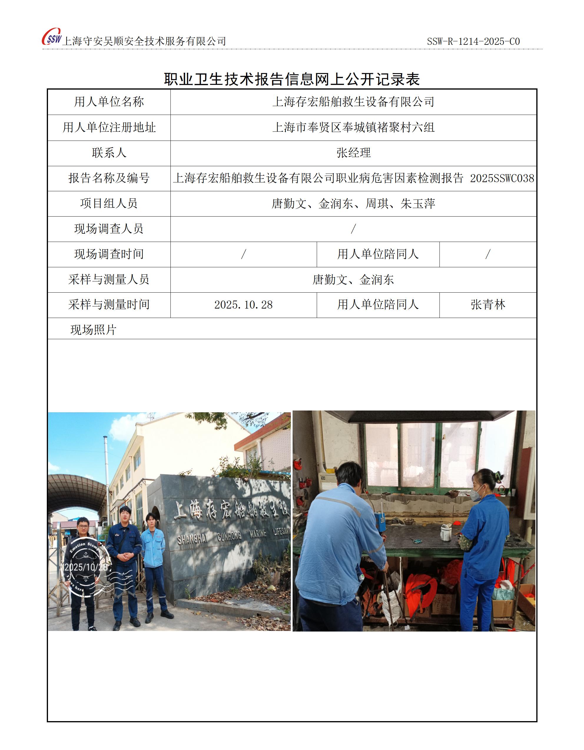 上海存宏船舶救生设备有限公司职业病危害因素指定检测