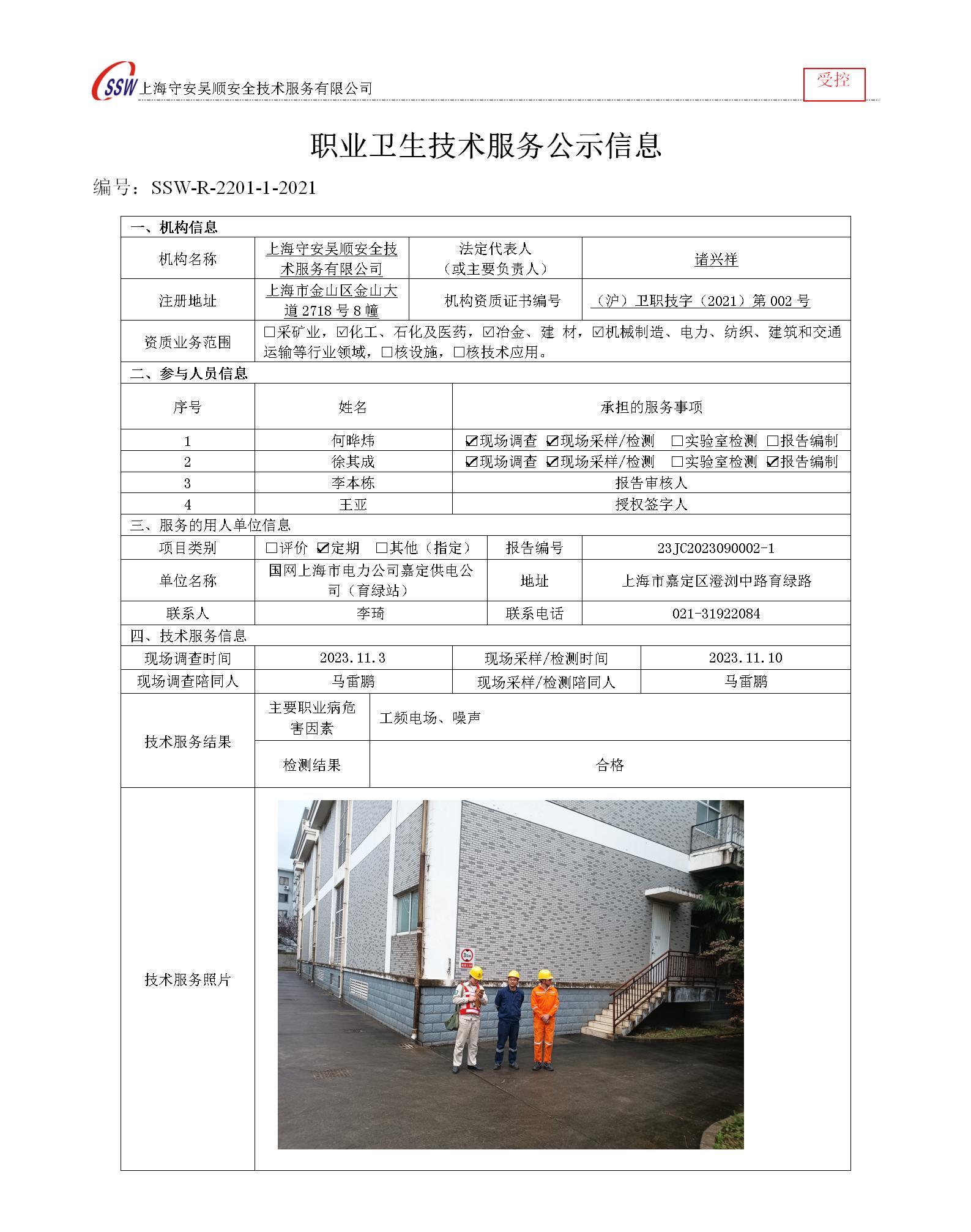 国网上海市电力公司嘉定供电公司(育绿站)检测
