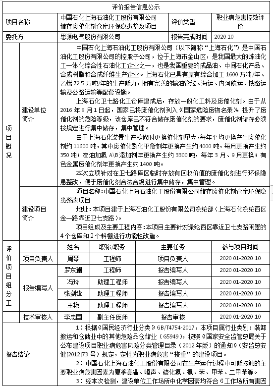 中国石化上海石油化工股份有限公司 储存废催化剂仓库环保隐患整改项目