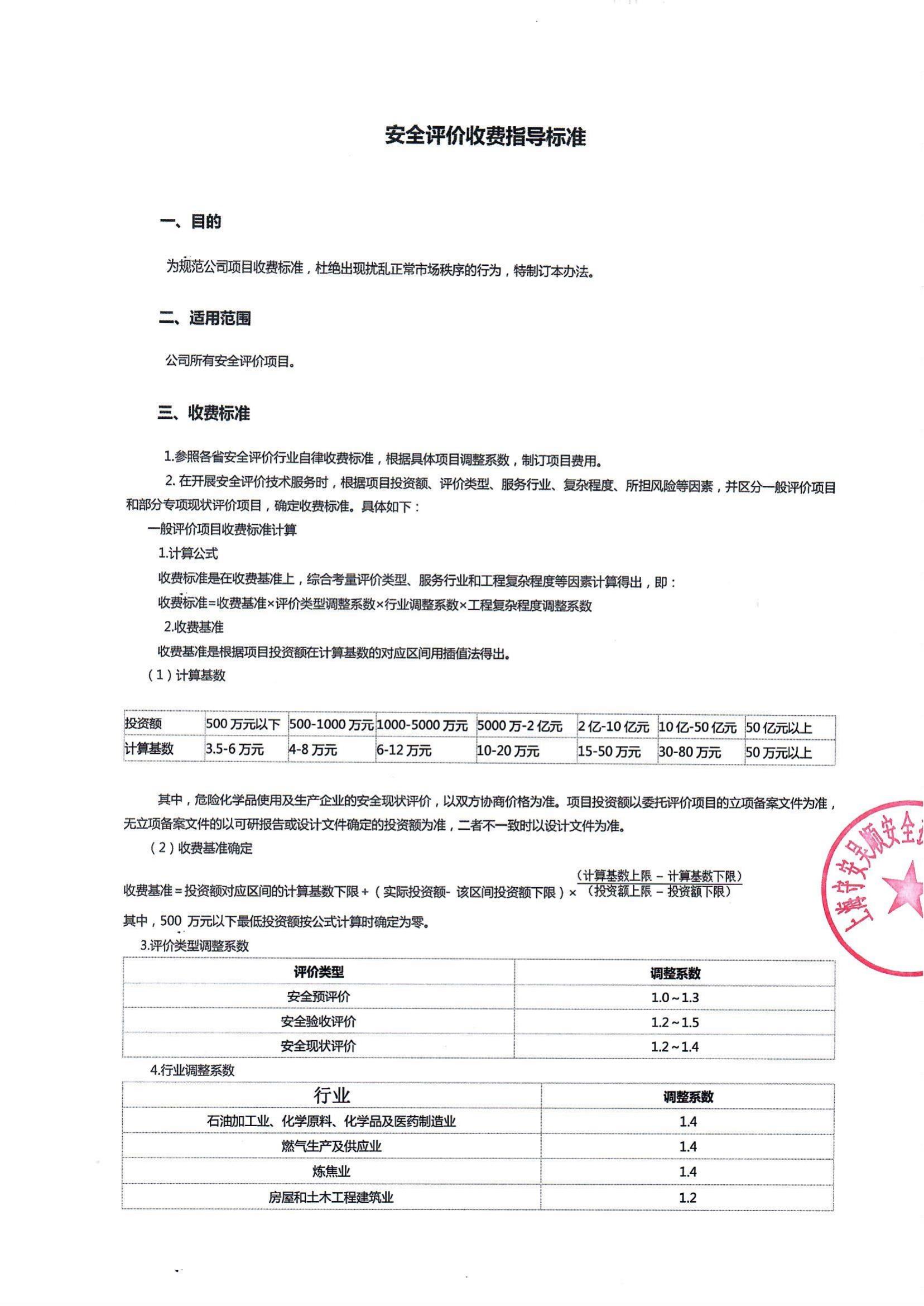 安全评价收费指导标准