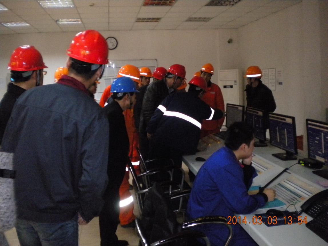 讲解完成后一起去一楼参观中央控制室,在中央控制室蒋总介绍了相关的操作要求与联锁信号从现场设备反馈到计算机上,公司员工们也纷纷提问,了解相关要求与信息。