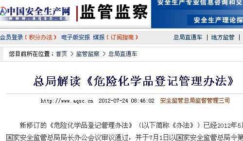 总局解读《危险化学品登记管理办法》